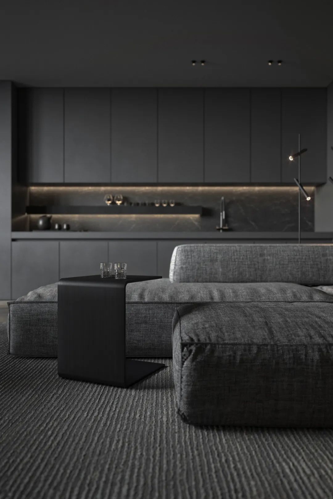 個(gè)干凈利落的灰調(diào)空間,柔和,沉穩(wěn)、安靜,呈現(xiàn)寧?kù)o雅致的氛圍。以簡(jiǎn)約到極致為追求,它簡(jiǎn)約而不簡(jiǎn)單,讓人能不斷的摸索和體會(huì)它的內(nèi)在美,呈現(xiàn)出更為細(xì)膩和柔軟的肌理與感官。