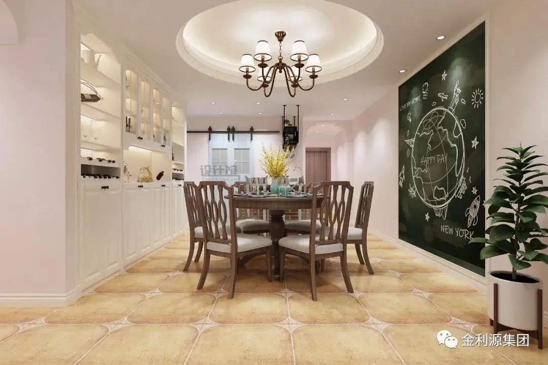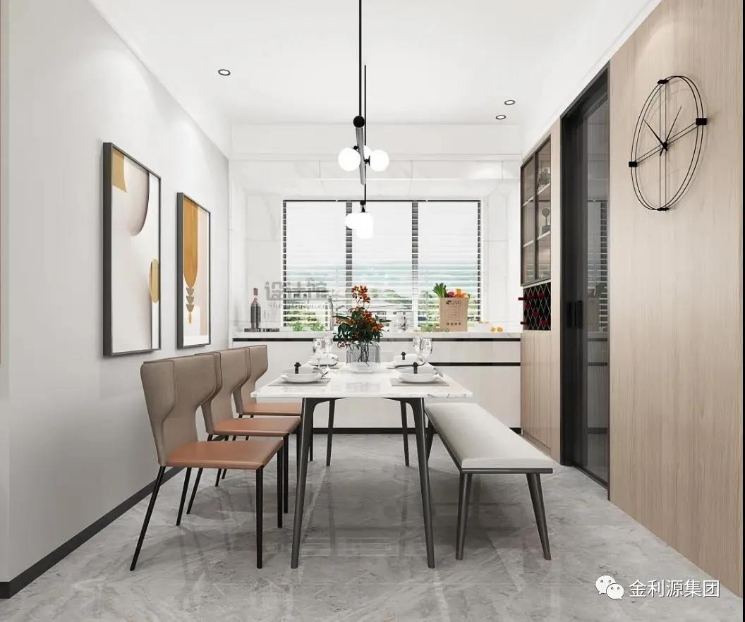 ▲靠著餐邊背景墻,也是一個(gè)餐邊柜擺放的好地方。