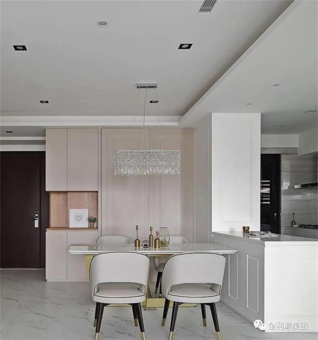 矮柜隔斷,不僅能夠裝飾餐廳,還能夠作為餐邊柜,提升日常生活的便捷性,看似是同一空間,實則相互獨立,營造出用餐儀式感。