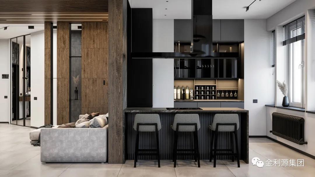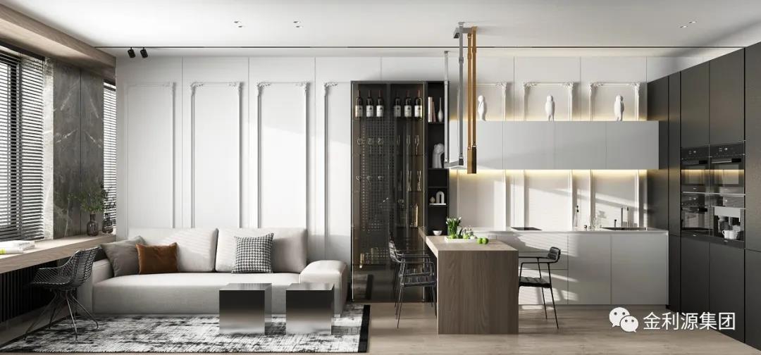 吧臺作為柜體隔斷,可以與櫥柜一體定制,整體性更強,節(jié)省空間,讓室內顯得井然有序。