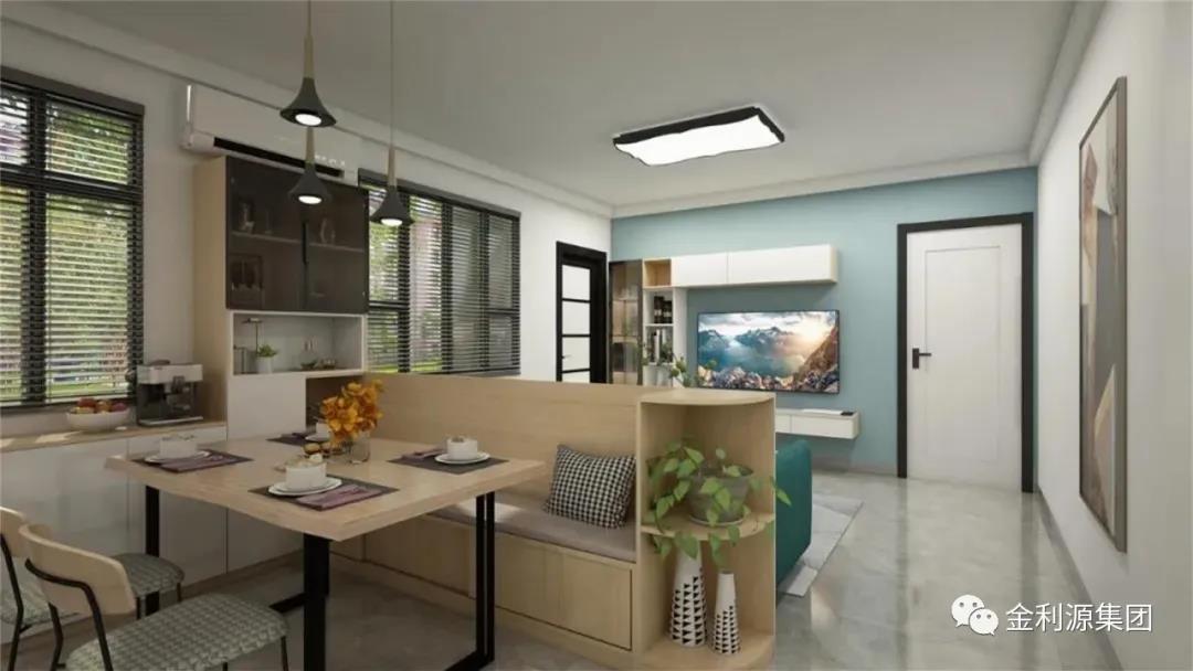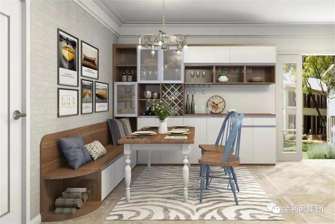 面積有限的迷你戶型,入門見餐廳,可以定制卡座+矮柜,替代餐椅,不僅達到分割空間的作用,而且居室的顏值和收納都得到有效的提升!