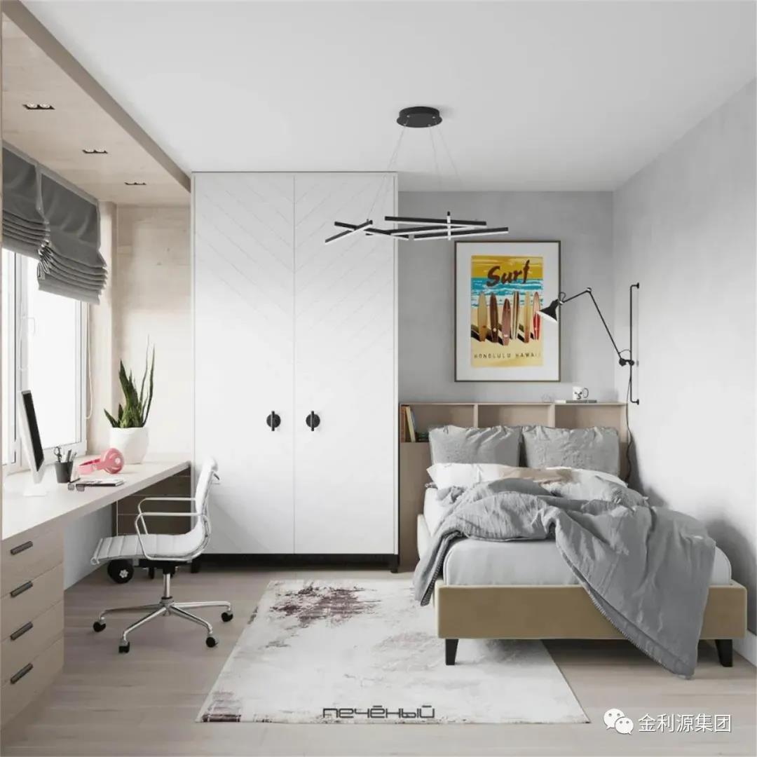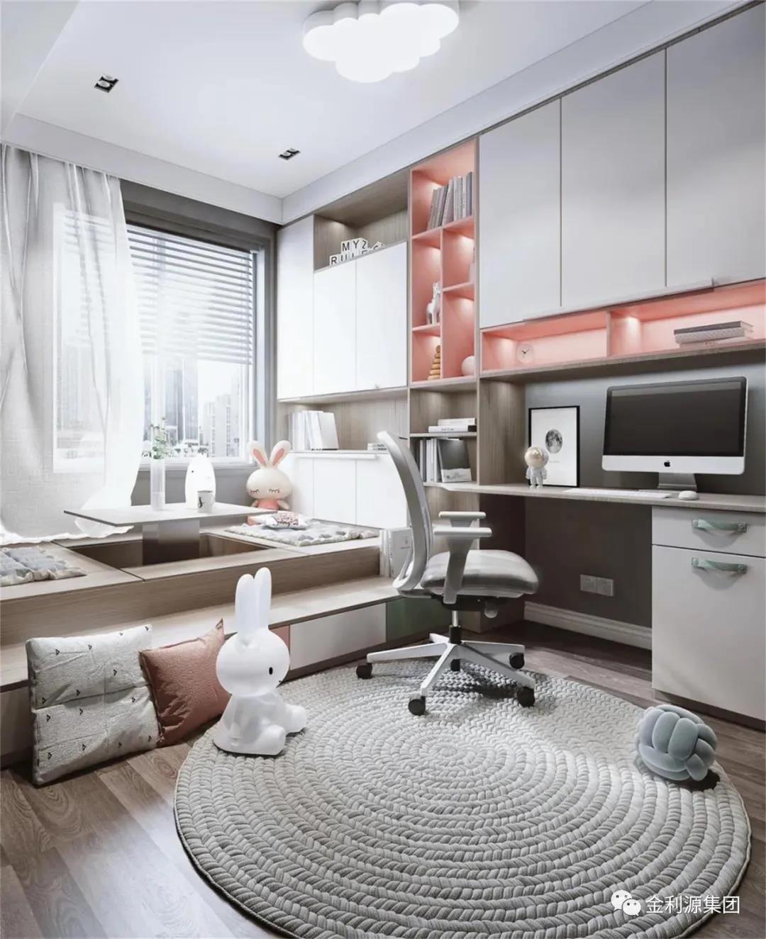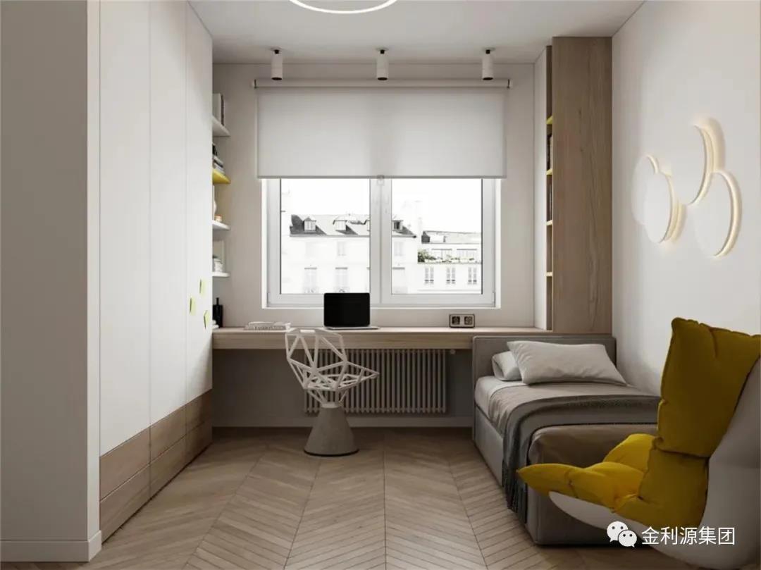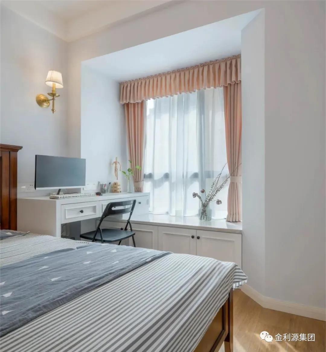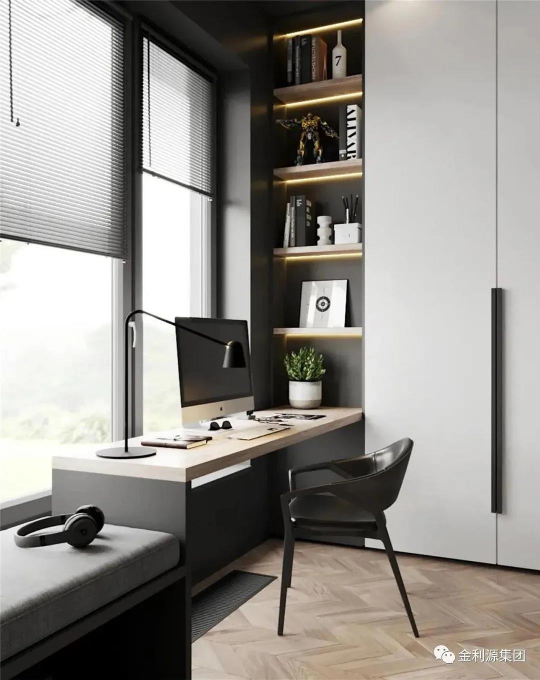 將飄窗改成工作區(qū),不僅光線好利于學(xué)習(xí),還最大化的利用了空間,十分巧妙。同時(shí)可以在書桌旁邊安裝小書柜或吊柜,用于存放工作資料,無論是存放還是拿取,抬手就能做到,很方便!