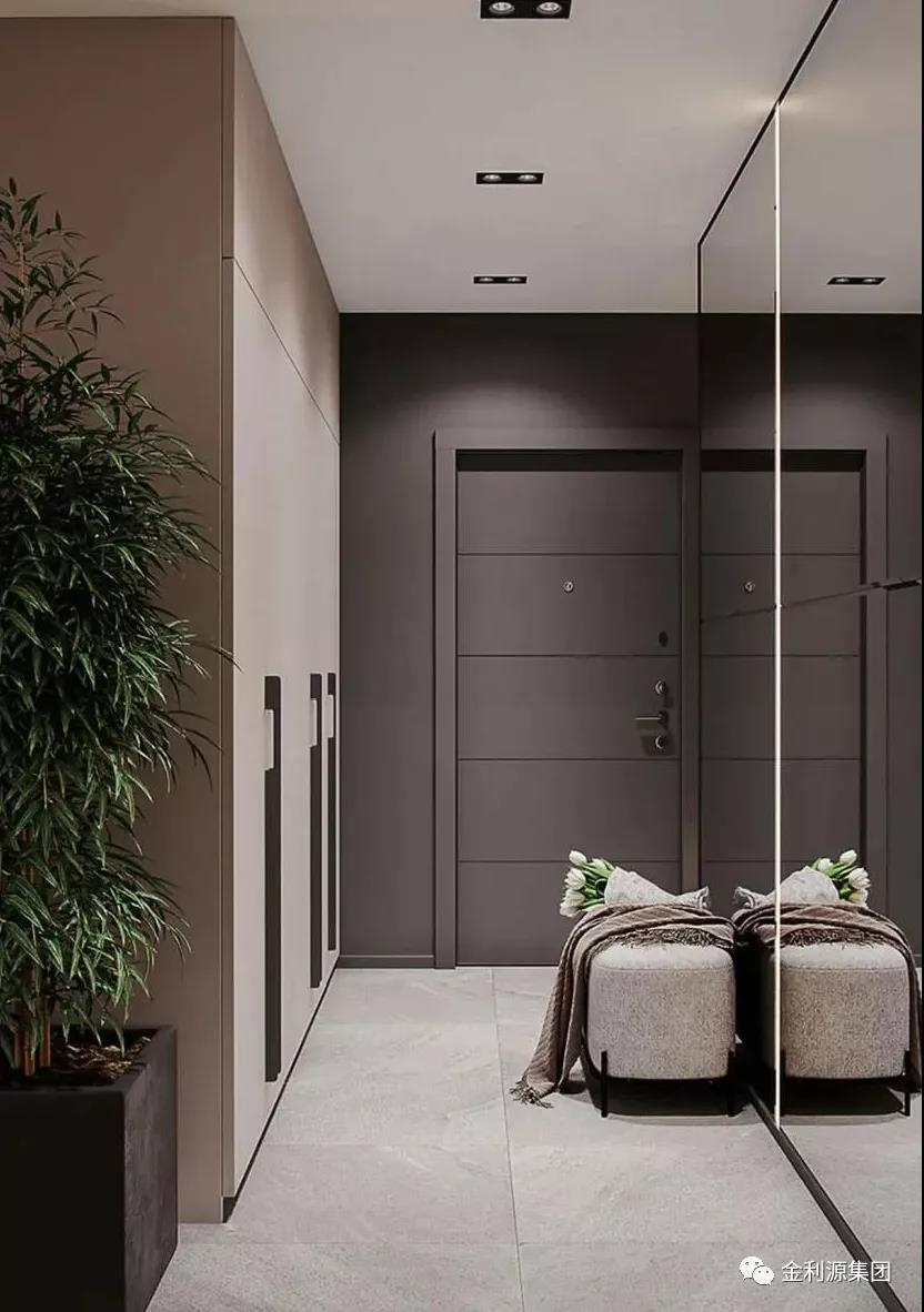 相當(dāng)于把玄關(guān)間隔開,私密性效果最好,可以在這個(gè)空間掛一些裝飾畫、放精致的擺件,配合燈光的效果渲染,讓人一進(jìn)門就感受到你家的藝術(shù)氛圍。