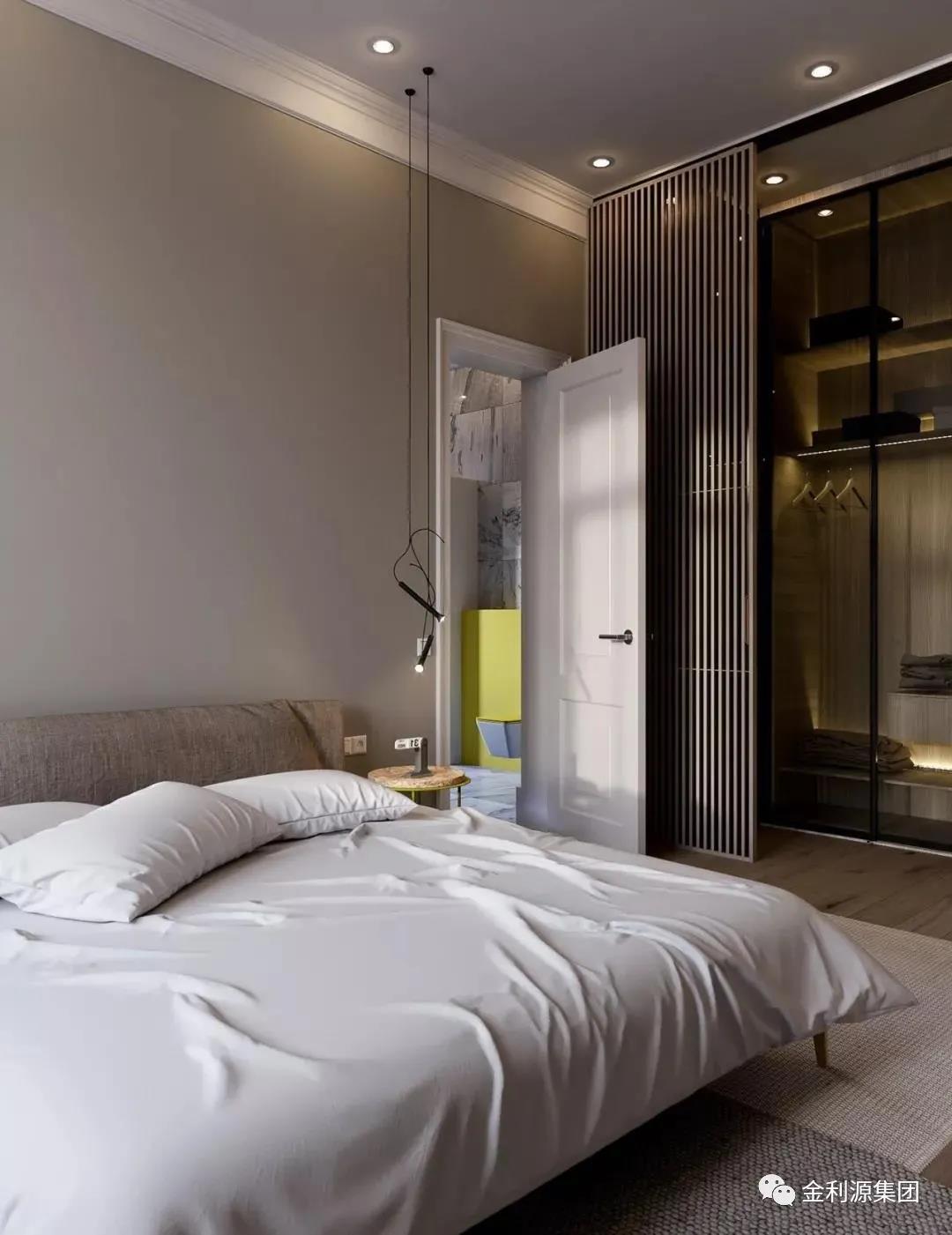 還可以利用一個(gè)完整的墻面就勢(shì)打造一個(gè)更衣柜,與獨(dú)立式衣帽間相比,它的特點(diǎn)在于,占地面積小,體量輕盈,不會(huì)產(chǎn)生壓抑感。