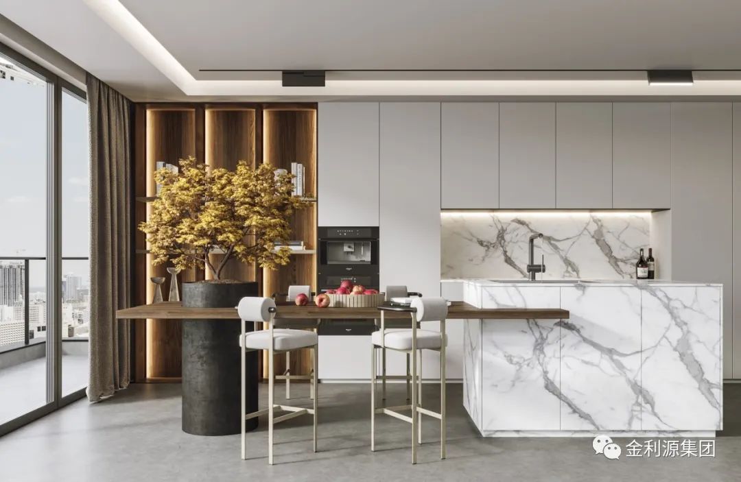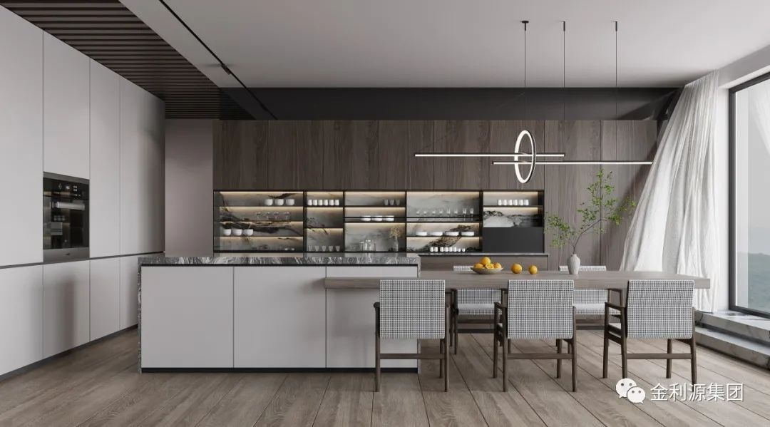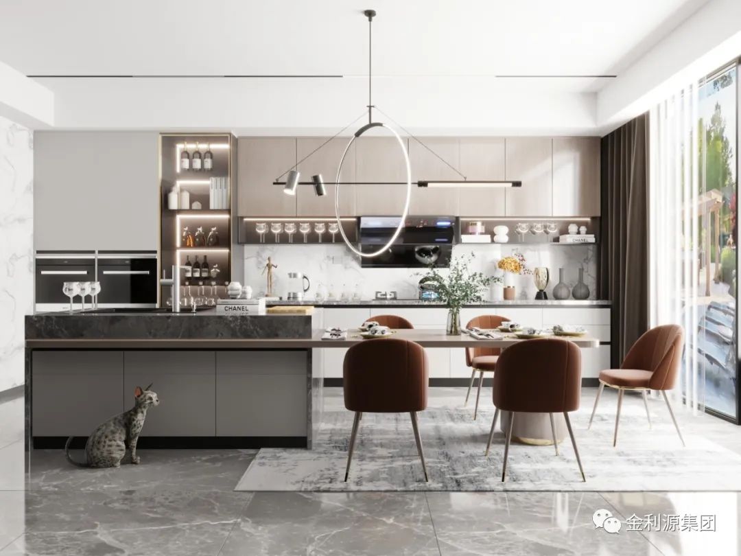 以往廚房、餐廳各自獨立,家庭戶型小就只能將客廳做餐廳。而現(xiàn)在,將餐廚結合設計,逐漸變成一種時尚,一方面節(jié)約了家庭空間,另一方面則能將空間規(guī)劃更為統(tǒng)一。