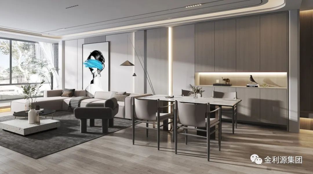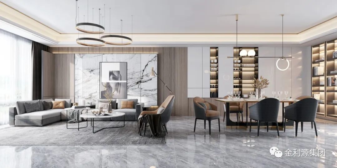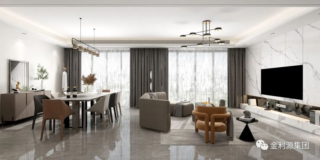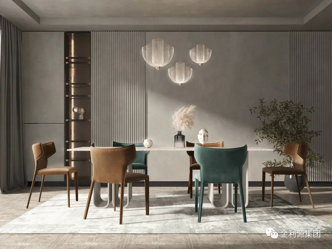 對于戶型狹長的餐廳而言,可選用長方形餐桌,利用空間的優(yōu)勢,擴大餐桌容量。