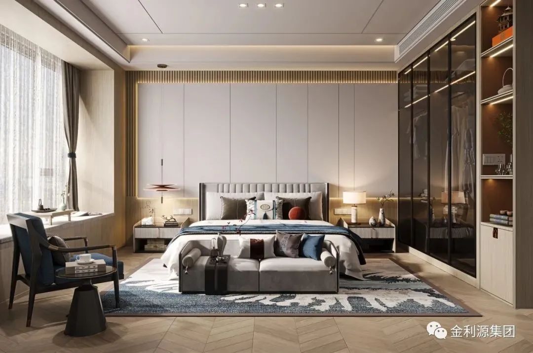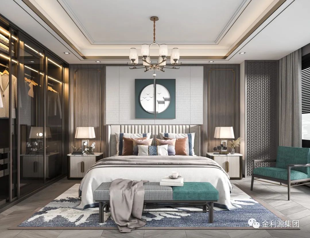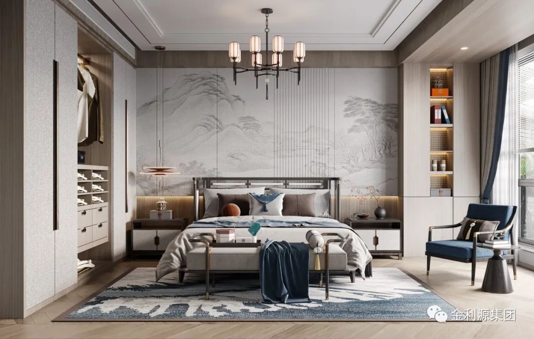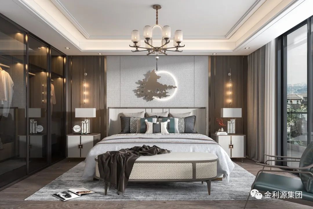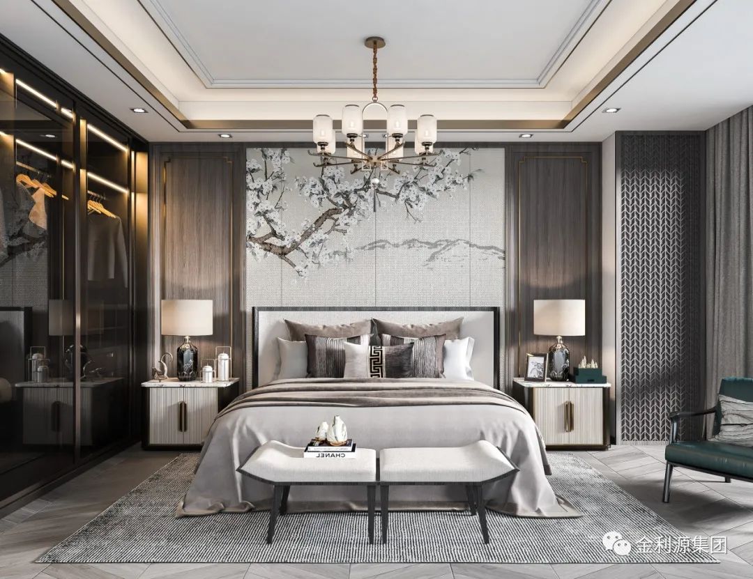 新中式臥室崇尚原木,裝飾中最大限度地保留了木材的原始色彩和質(zhì)感,有很獨(dú)特的裝飾效果,總是給人一種清雅、淡然的美好。