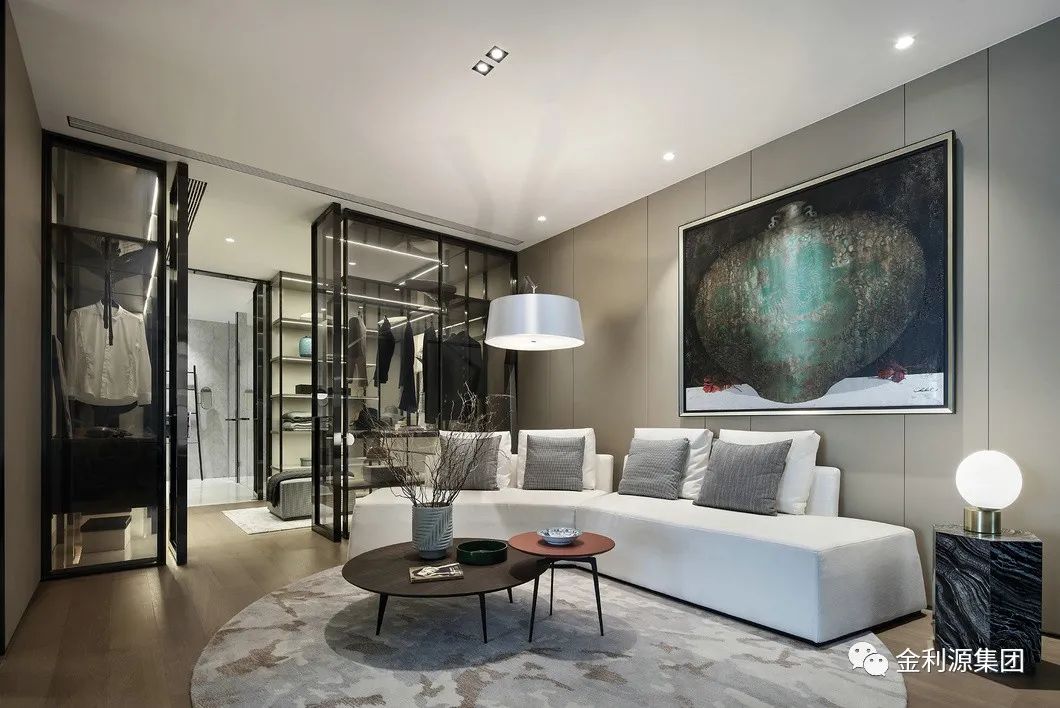 在空間允許下,可利用柜體或玻璃門做隔斷,劃分出一個(gè)衣帽間,這樣不僅不會(huì)浪費(fèi)空間合理使用,還會(huì)在使用上更加便捷,起居動(dòng)線更加合理。