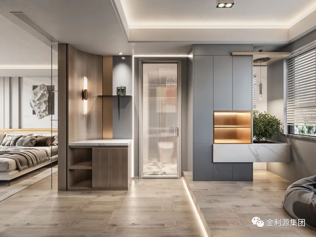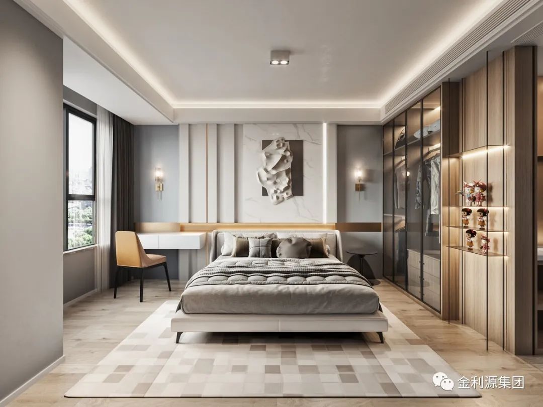 不管是早上還是晚上的晨起和就寢活動(dòng)都在一個(gè)空間里完成,以最短的家居動(dòng)線實(shí)現(xiàn)舒適便捷。