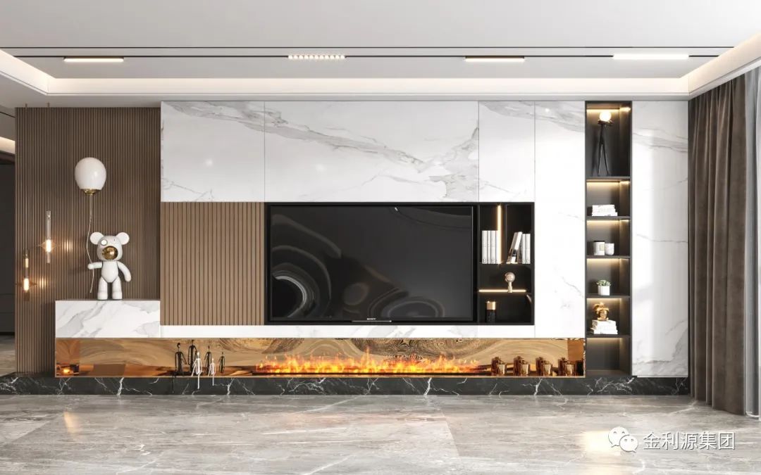 大面積的客廳給了背景墻多樣的設(shè)計方式