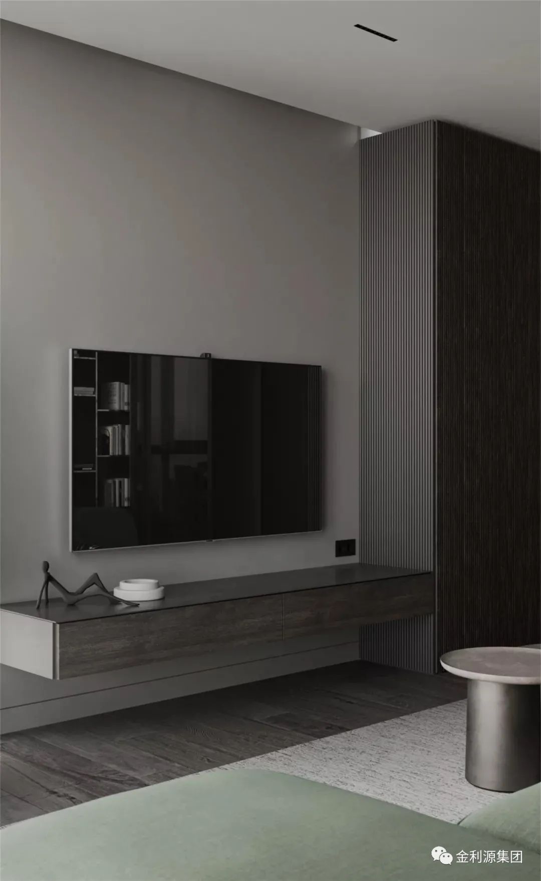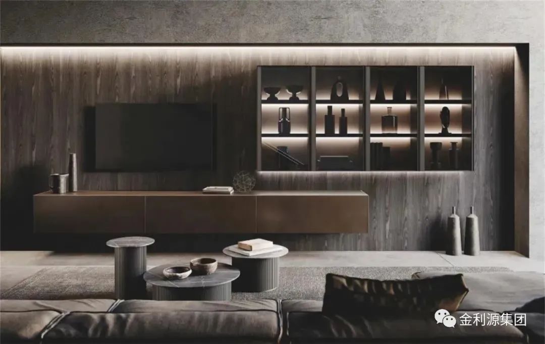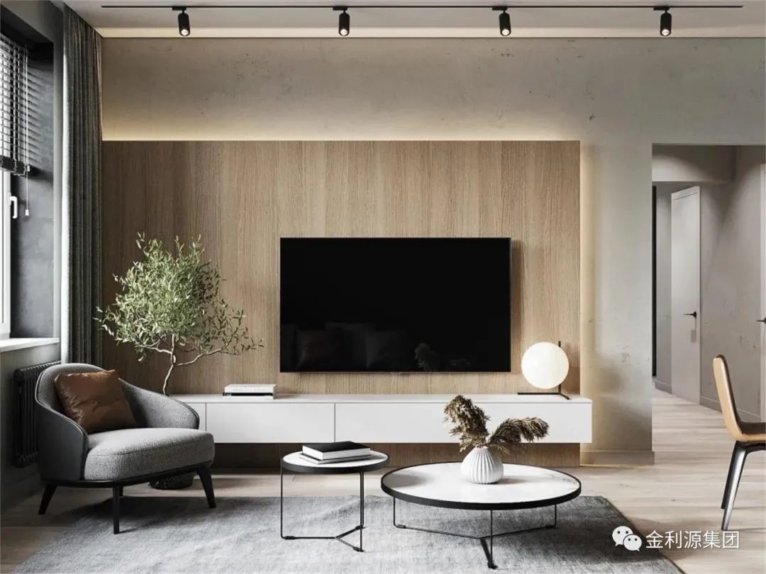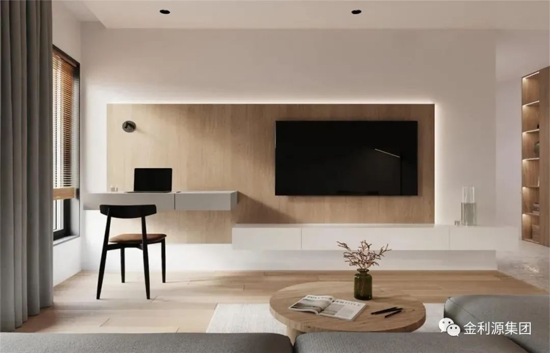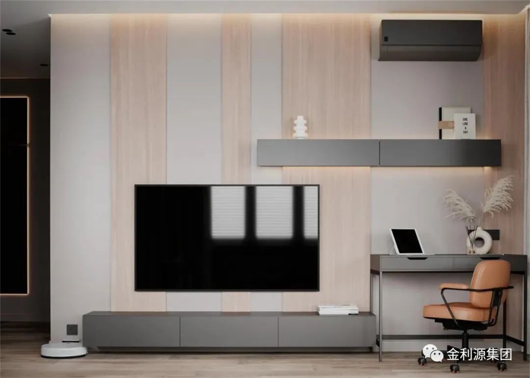 不落地的懸掛式電視柜,與背景墻融為一體,集收納、顏值、設(shè)計感于一身,將空間的高級感拉滿,簡單的空間形態(tài)和收納零散的物品,搭配壁掛式電視,簡單輕便,精致大氣,頗受年輕人歡迎。