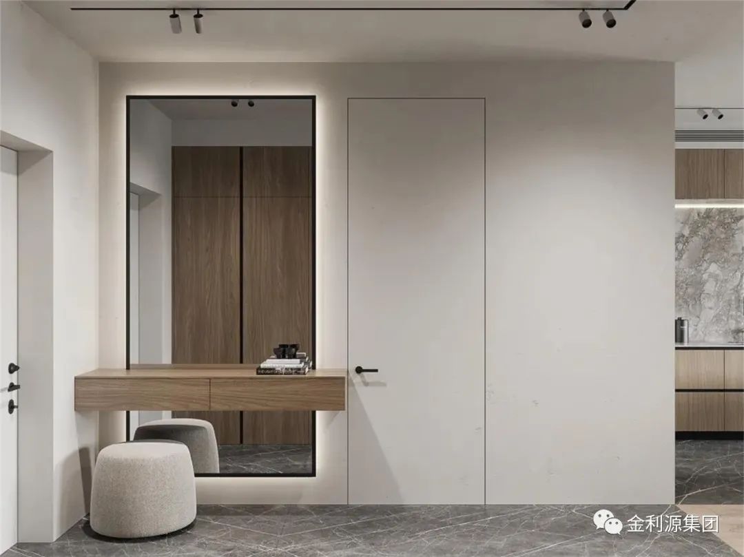 打破常規(guī),將玄關(guān)柜設(shè)計成懸掛式,輕巧簡潔,避免了大柜子帶來的沉重感,色彩、光影的結(jié)合,從而形成和諧的審美秩序,大大提升了家居生活的格調(diào)和儀式感。