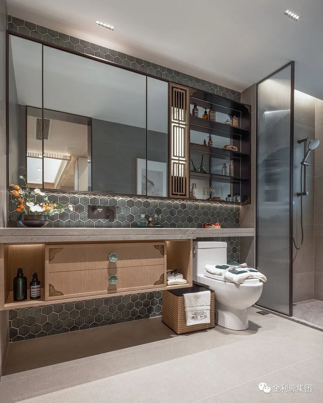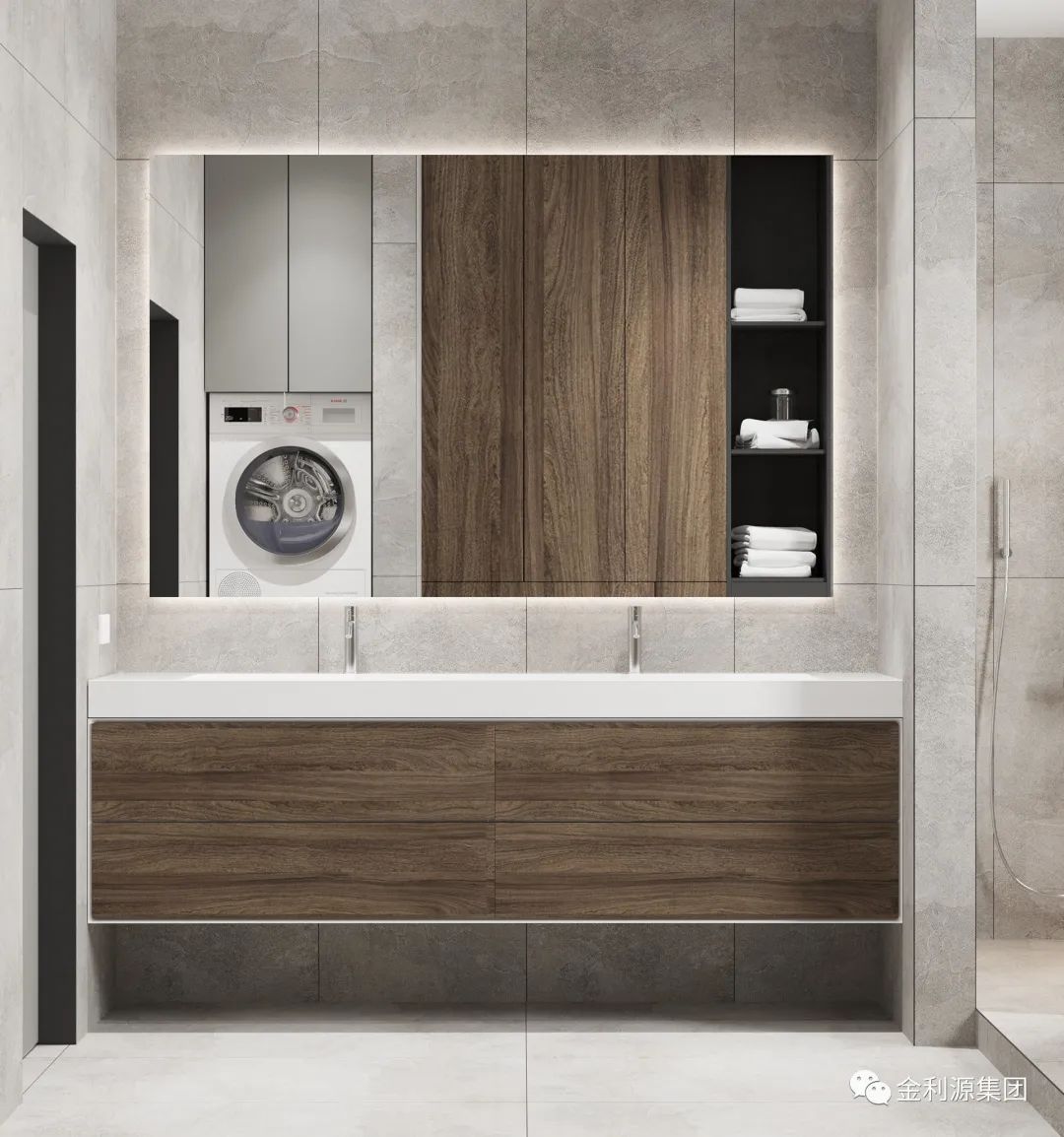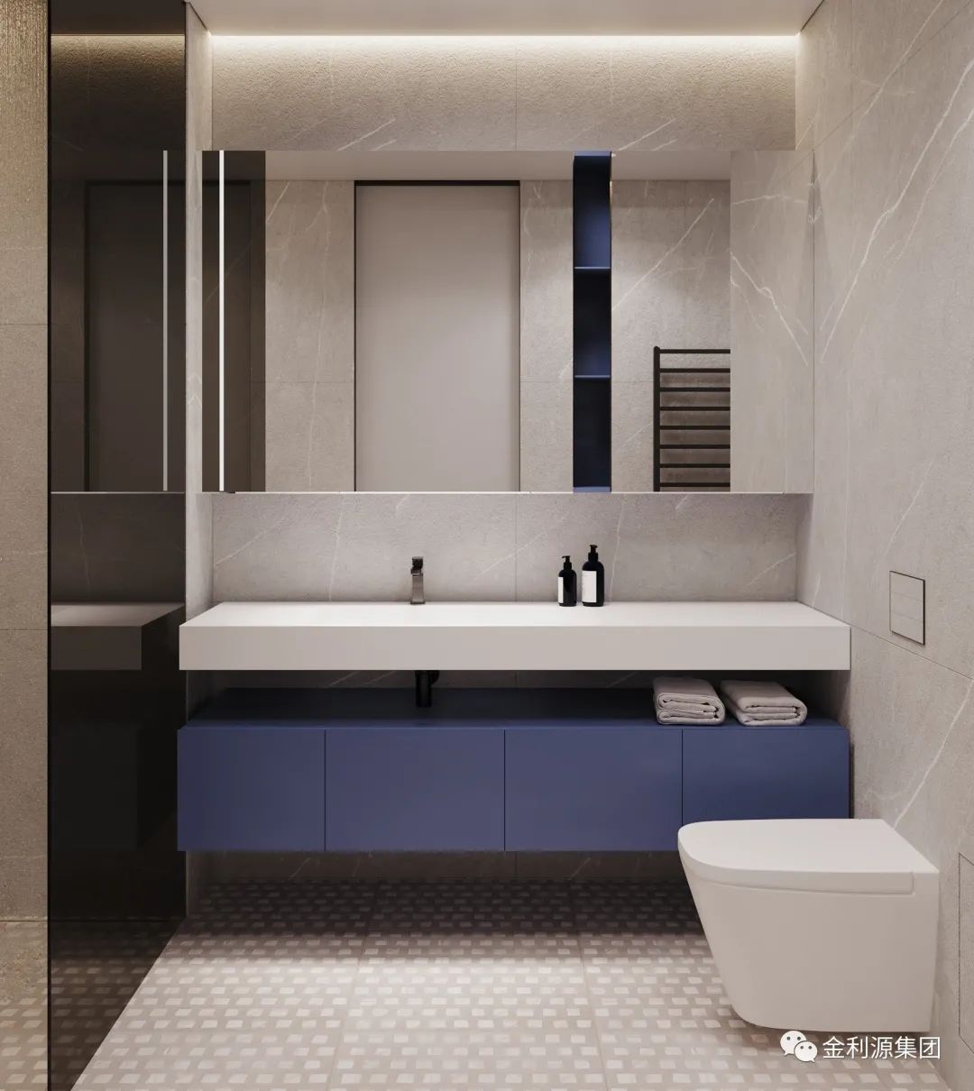 讓空間變得超寬敞,這就是鏡面柜的作用之一,因?yàn)殓R子可以反光,特別是無把手的鏡面柜,乍一看一點(diǎn)都看不出是柜子,鏡子里反射出來的地面,將衛(wèi)生間地面進(jìn)行了延伸。從視覺上拉伸了衛(wèi)生間空間。