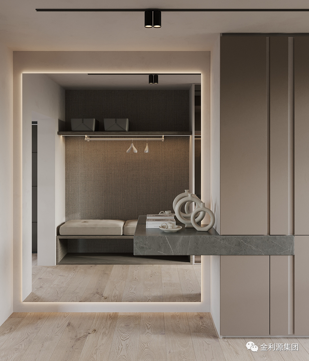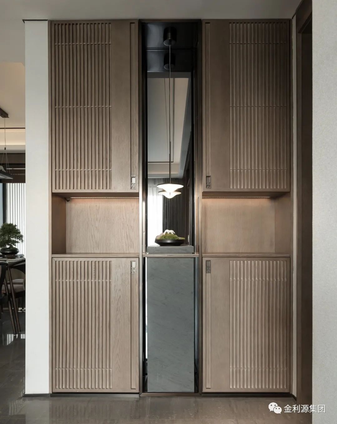 現(xiàn)如今,柜面不只局限于一種材質(zhì),有趣味性的鏡面拉門不僅能擴(kuò)大空間,還能讓原本沉穩(wěn)和呆板的空間更為靈動(dòng)、通透。