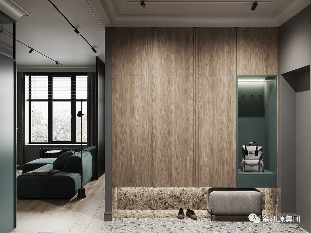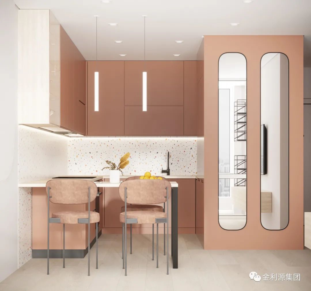 在這種無法輕易更改位置或變動(dòng)的情況下,完全可以通過更換柜門面板來增加柜體的現(xiàn)代感,讓空間更有趣味性。