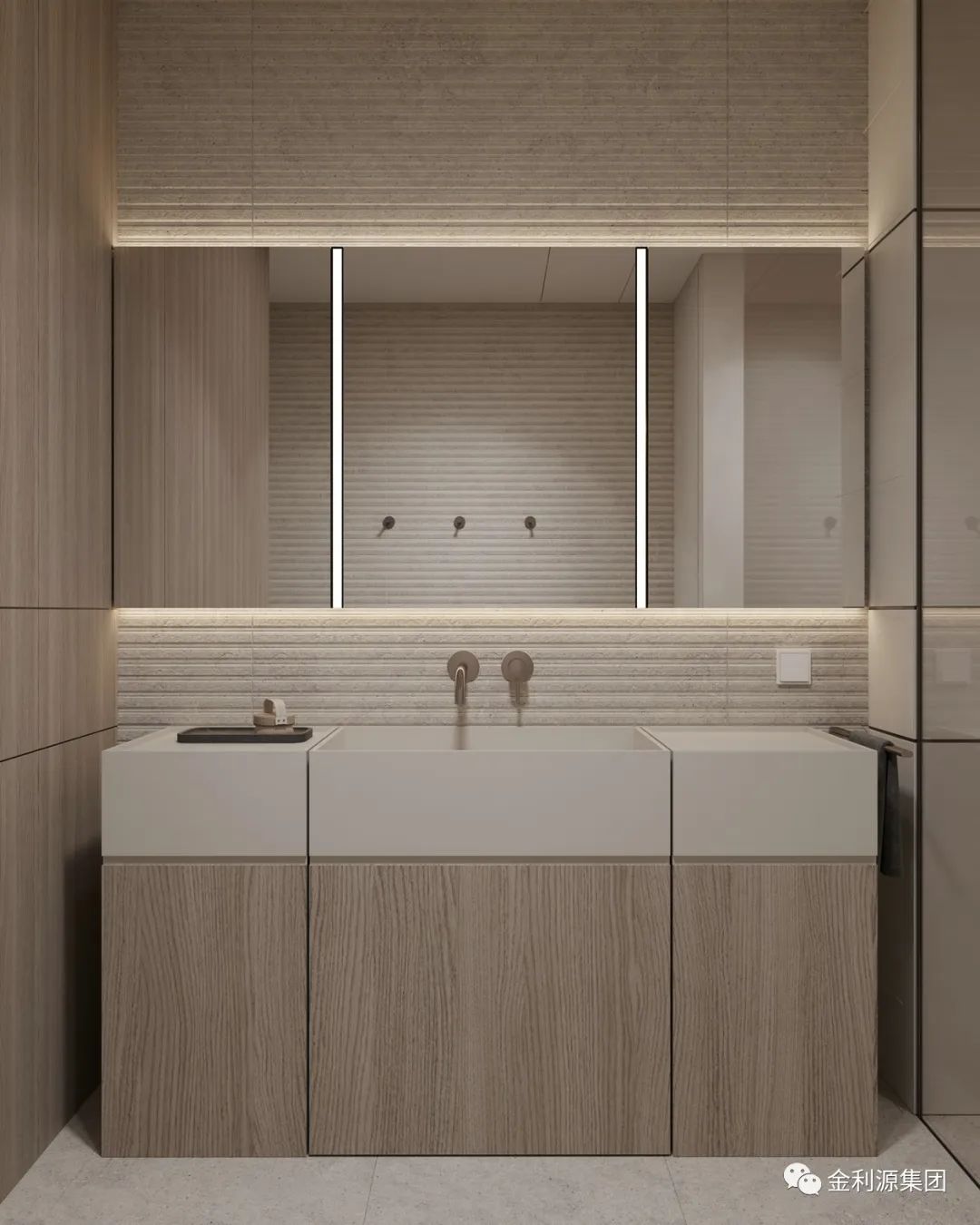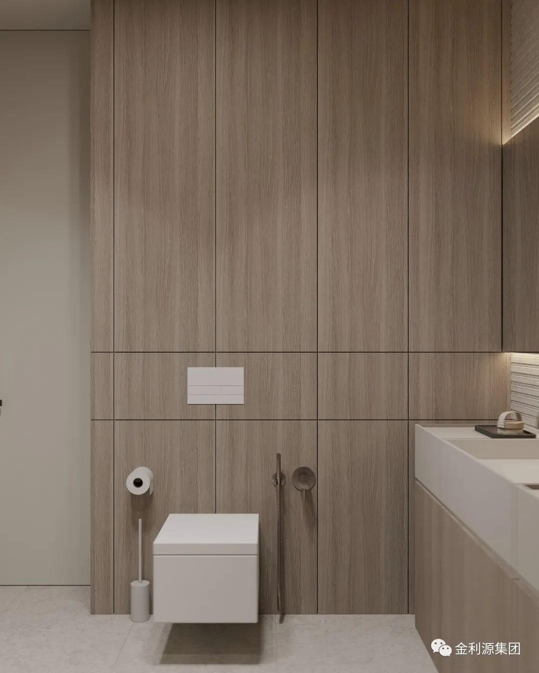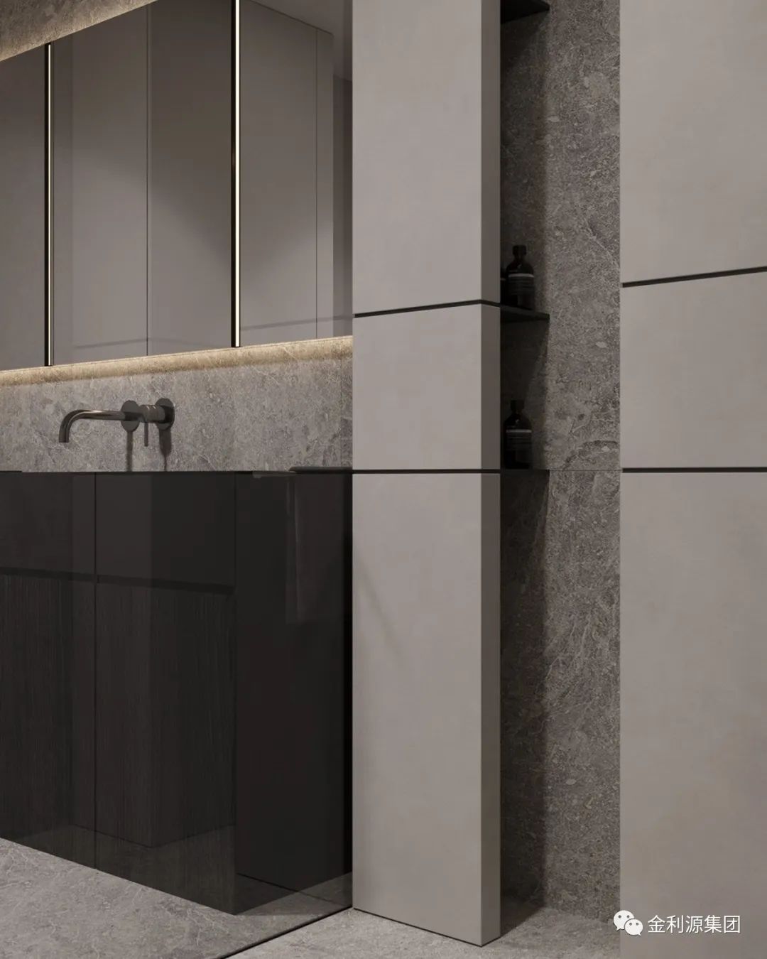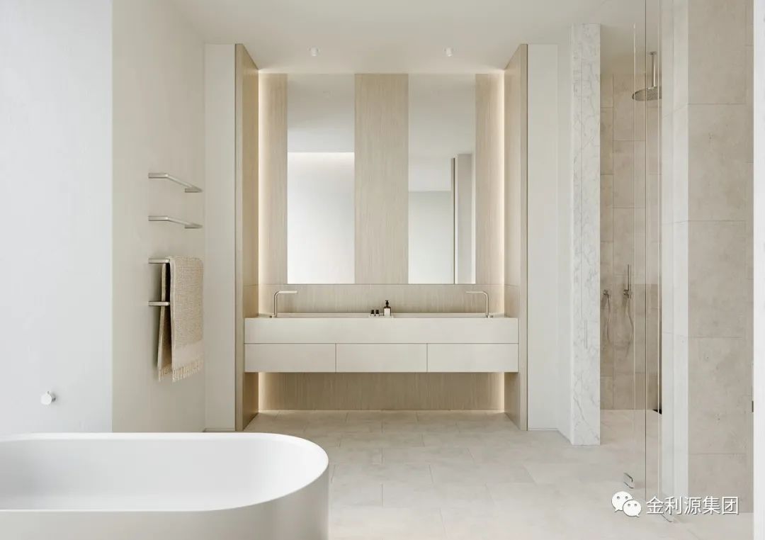 相較于浮式洗漱臺,壁掛式洗漱臺多了一層平面以及壁掛柜臺,不僅有浮式的設(shè)計美感,又有強大的收納性。是一個選擇性極高設(shè)計。