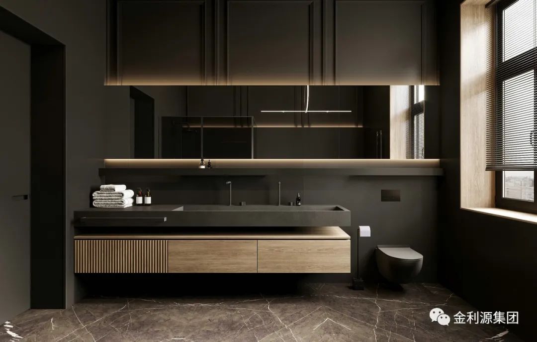 通常平層的設(shè)計和壁掛柜的設(shè)計多采用板材,其健康、環(huán)保的優(yōu)點保證了洗漱用品的安全。現(xiàn)代的洗手臺設(shè)計中落地式洗手臺與以前有所差異,它的底部不完全貼合地面,減少敦實笨重的感覺。