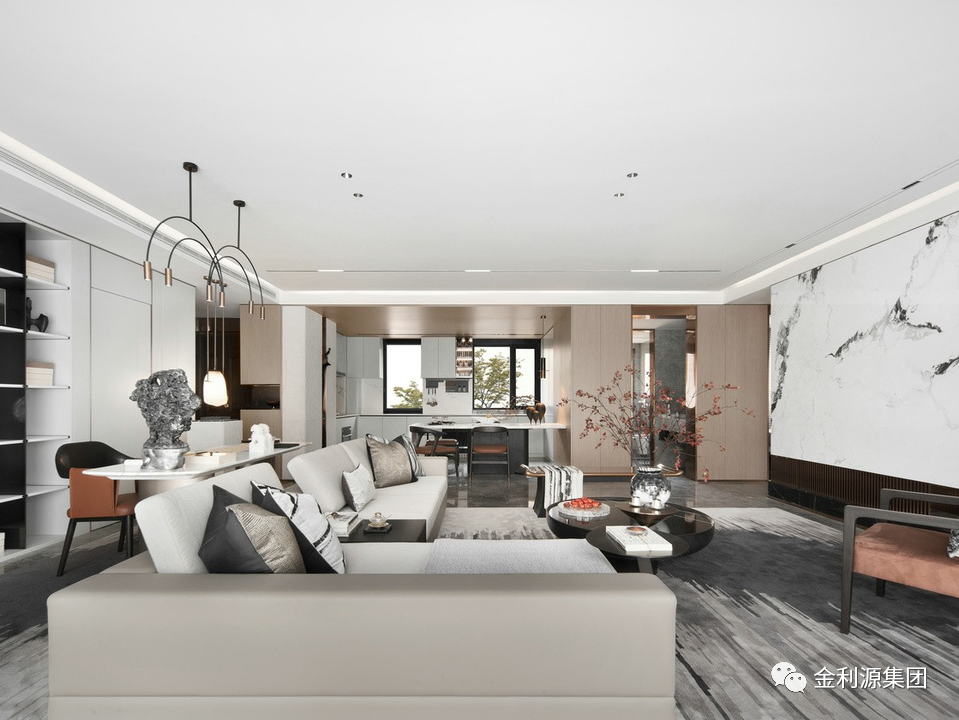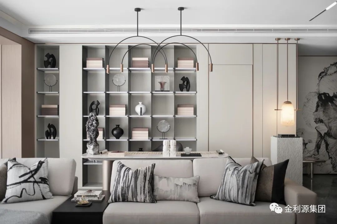 信步而入,主空間的展開面會目不暇接,還好近處鐘乳石燈剔透誘人??蛷d的四面兩兩對應(yīng)的顏色各自展示優(yōu)勢,黑白色沉著承大體。亮色作為主調(diào)之一,和家里其它淺色的家具、地板等產(chǎn)生呼應(yīng)或者過渡感;