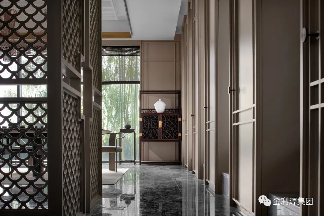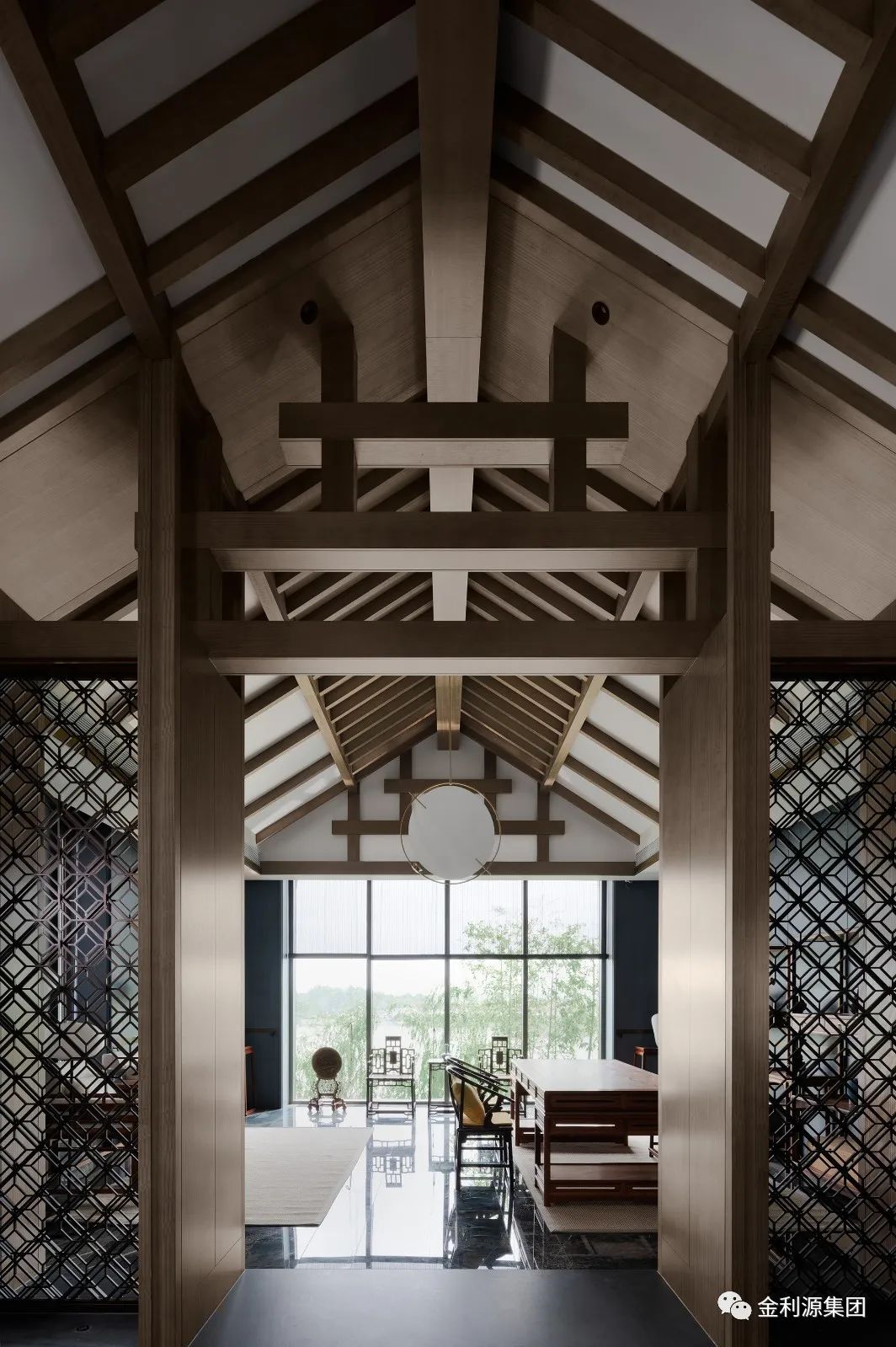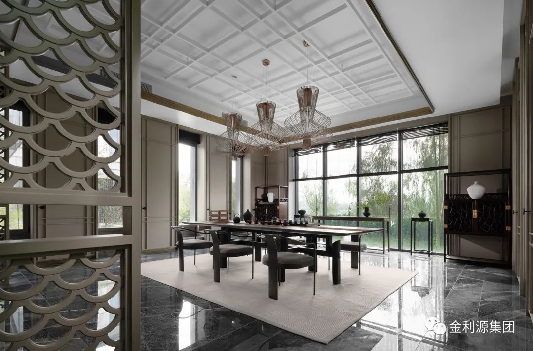 以沉穩(wěn)木色打造中式氛圍,全落地玻璃窗將庭院風(fēng)景完全納入室內(nèi),晨曦薄暮,霞光微星,不必漫步云端,也能仰望星空,信步遐想。