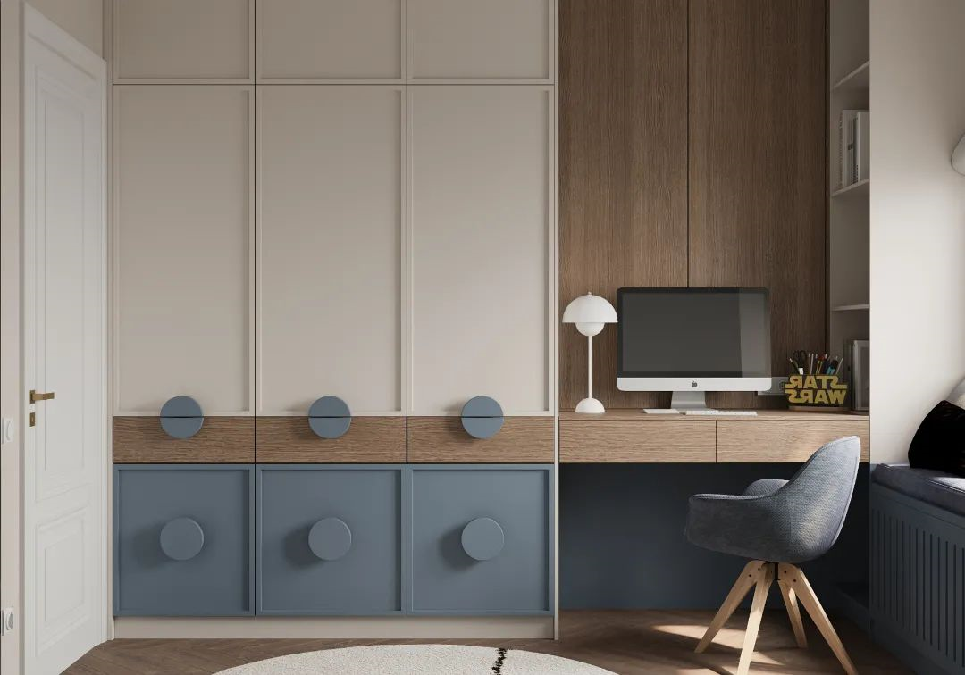 定制兒童房的衣柜,不僅需要采用明度高的色彩、活潑大膽的配色,還要讓孩子可以輕松收納玩具、衣物、書籍等各種雜物,滿足收納、展示及學(xué)習(xí)等多重需求。