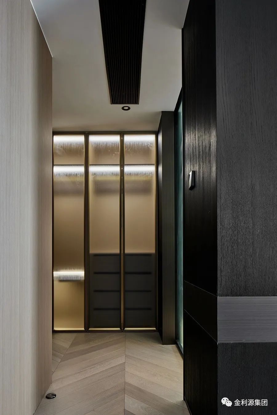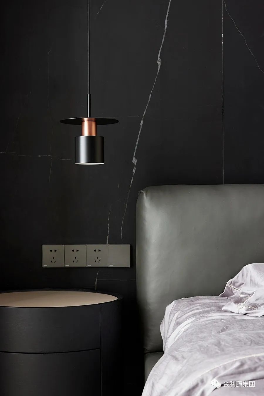 黑色的木飾面 石材及金屬