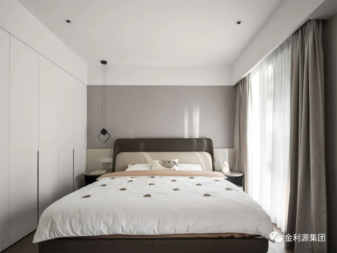 主臥沒有任何多余的裝飾,摩登、大氣,無主燈設(shè)計(jì),細(xì)節(jié)燈具局部照明,渲染溫馨氣氛,柔軟,細(xì)致,一切恰到好處,表達(dá)藝術(shù)時(shí)尚、極致雅奢的生活主張。