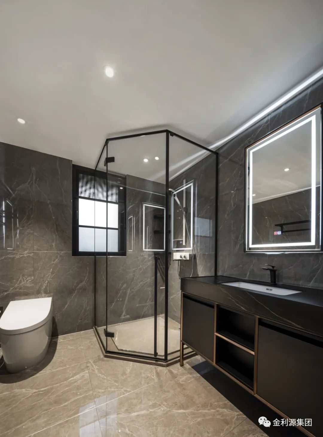 在面積允許的情況下,功能區(qū)明確劃分,三分離的設(shè)計(jì),雙臺(tái)盆,馬桶間,淋浴間,彼此獨(dú)立互不干擾。整體設(shè)計(jì)上也更加清爽,整潔。