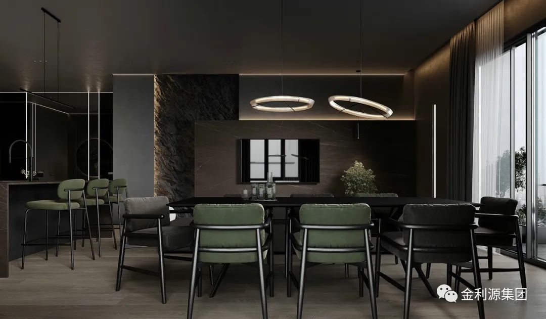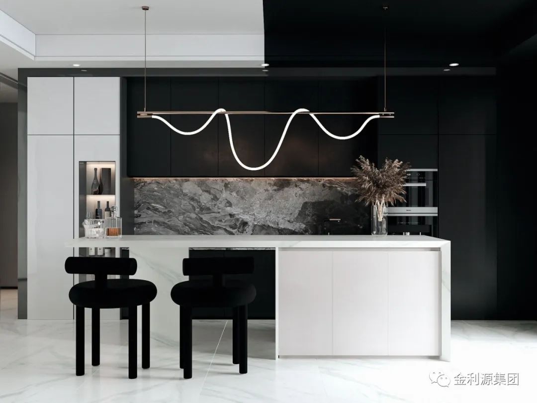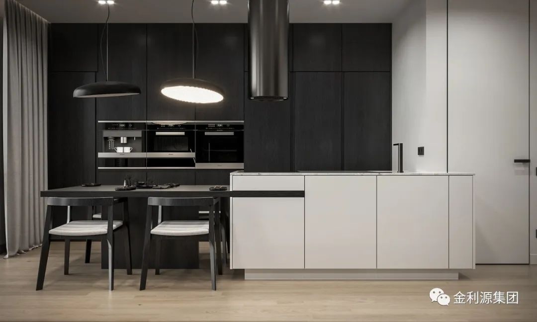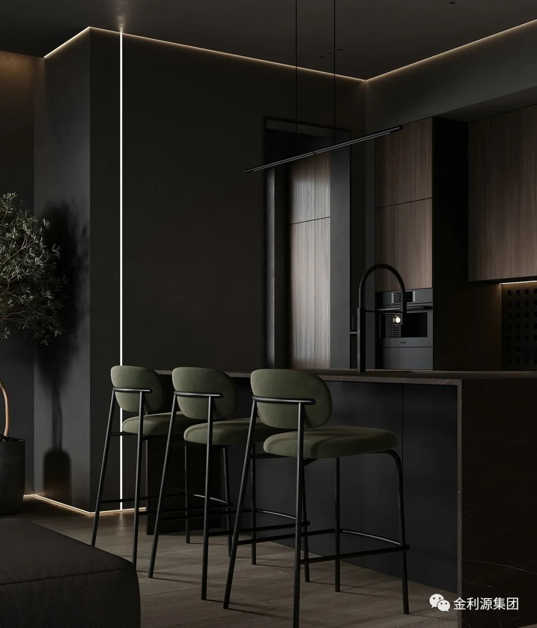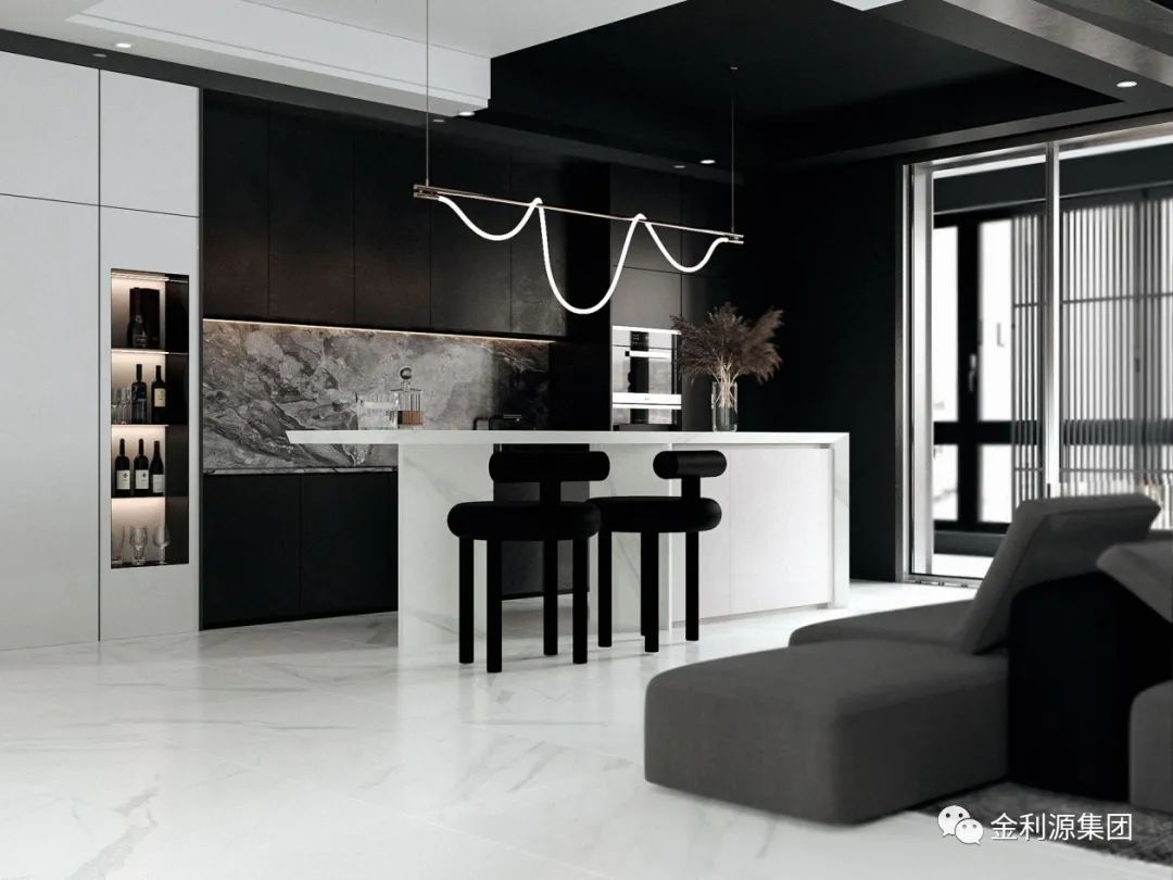 在家居設(shè)計中,黑色在空間中更是別具一格的存在,略帶復(fù)古感,又個性新潮,經(jīng)過淡淡的光澤渲染,空間充滿了魔幻魅力。