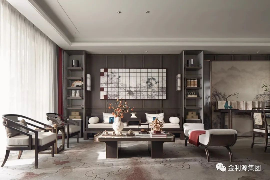 整體設計多融入中國傳統(tǒng)文化,以心靜如水的水和淡雅的墨畫為元素,空間靜謐中孕育著大氣和淡然。