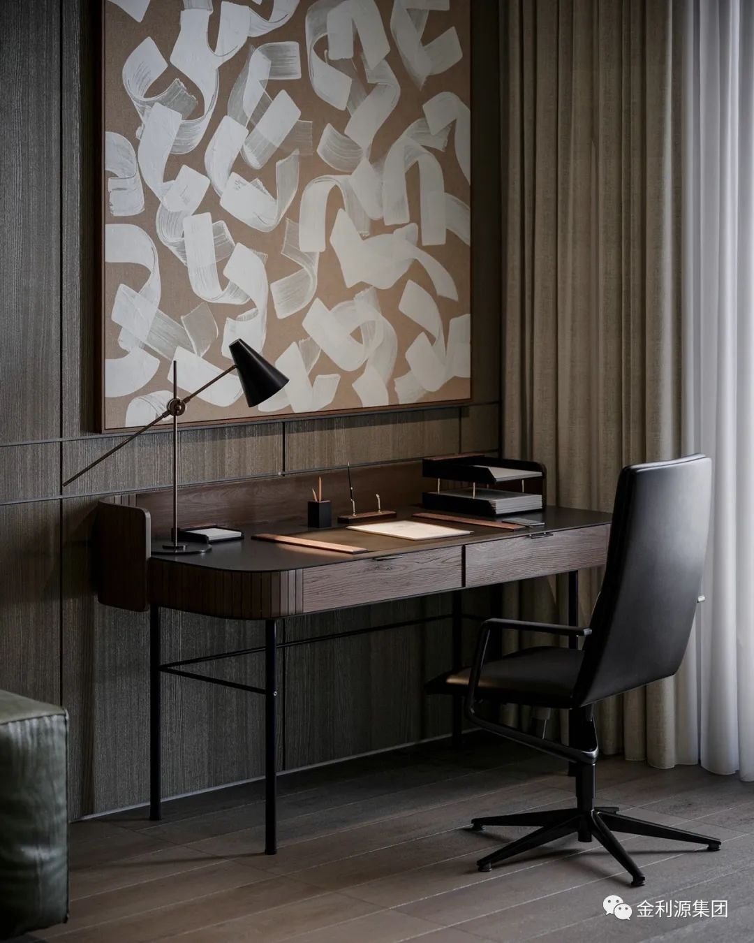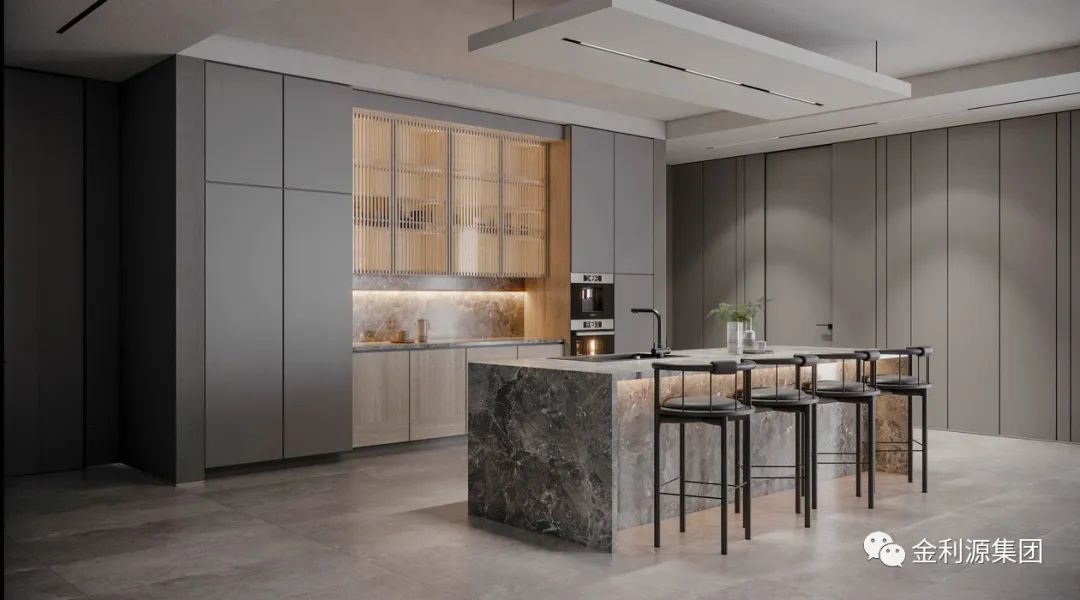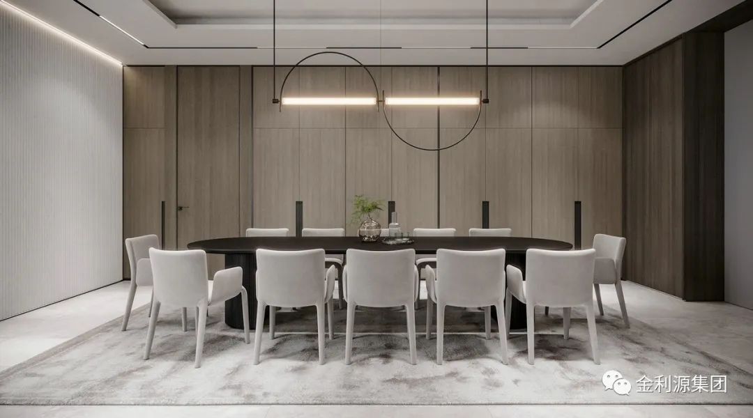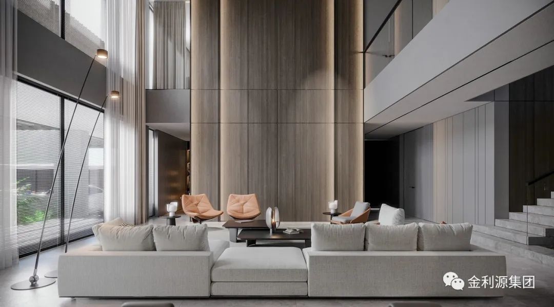 原木飾面在其中與之搭配加強空間層次感。經(jīng)拋光的木材泛起淡淡的光澤高級而有質(zhì)感,家具的柔美曲線結合獨特的設計如同一件獨立的藝術品,形式與功能完美結合到生活。生態(tài)板板材—金利源板材