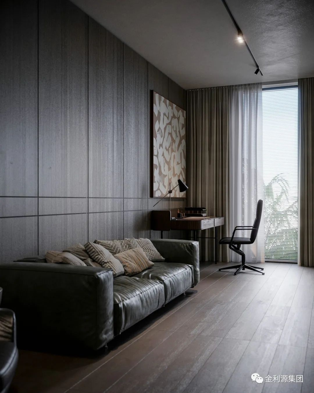 經(jīng)典的黑白灰配色搭配原木材質(zhì),營造質(zhì)樸且純粹的空間氛圍?;疑牟妓嚿嘲l(fā)搭配啞光黑色茶幾,造型極簡卻不失細節(jié)。嚴謹?shù)慕Y構設計方式讓空間變得井井有條,原木書柜與整體空間融合,細膩的紋理更顯空間的精致。生態(tài)板哪個牌子好—金利源板材