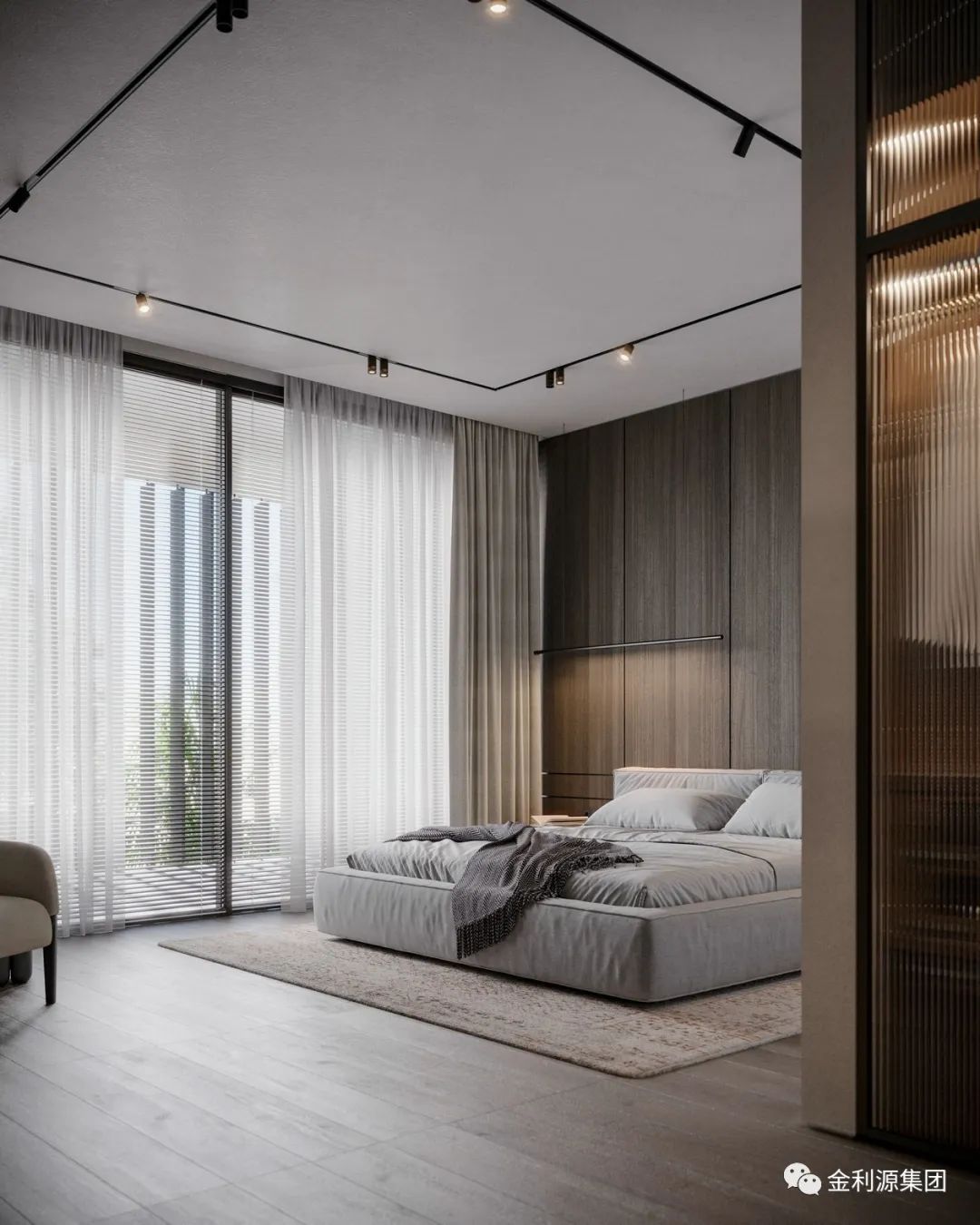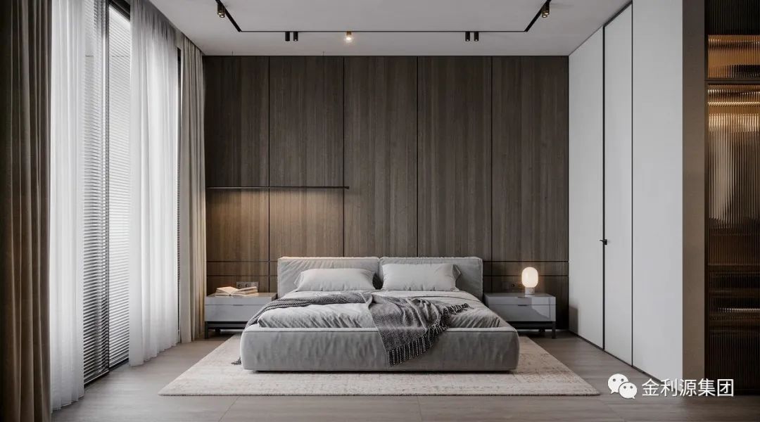 原木貫徹在整個空間,搭配低飽和度的色彩,呈現(xiàn)一個極簡主義與現(xiàn)代舒適相結合的居住空間,帶來的恬靜與閑適氛圍,溫馨又治愈。生態(tài)板—金利源板材