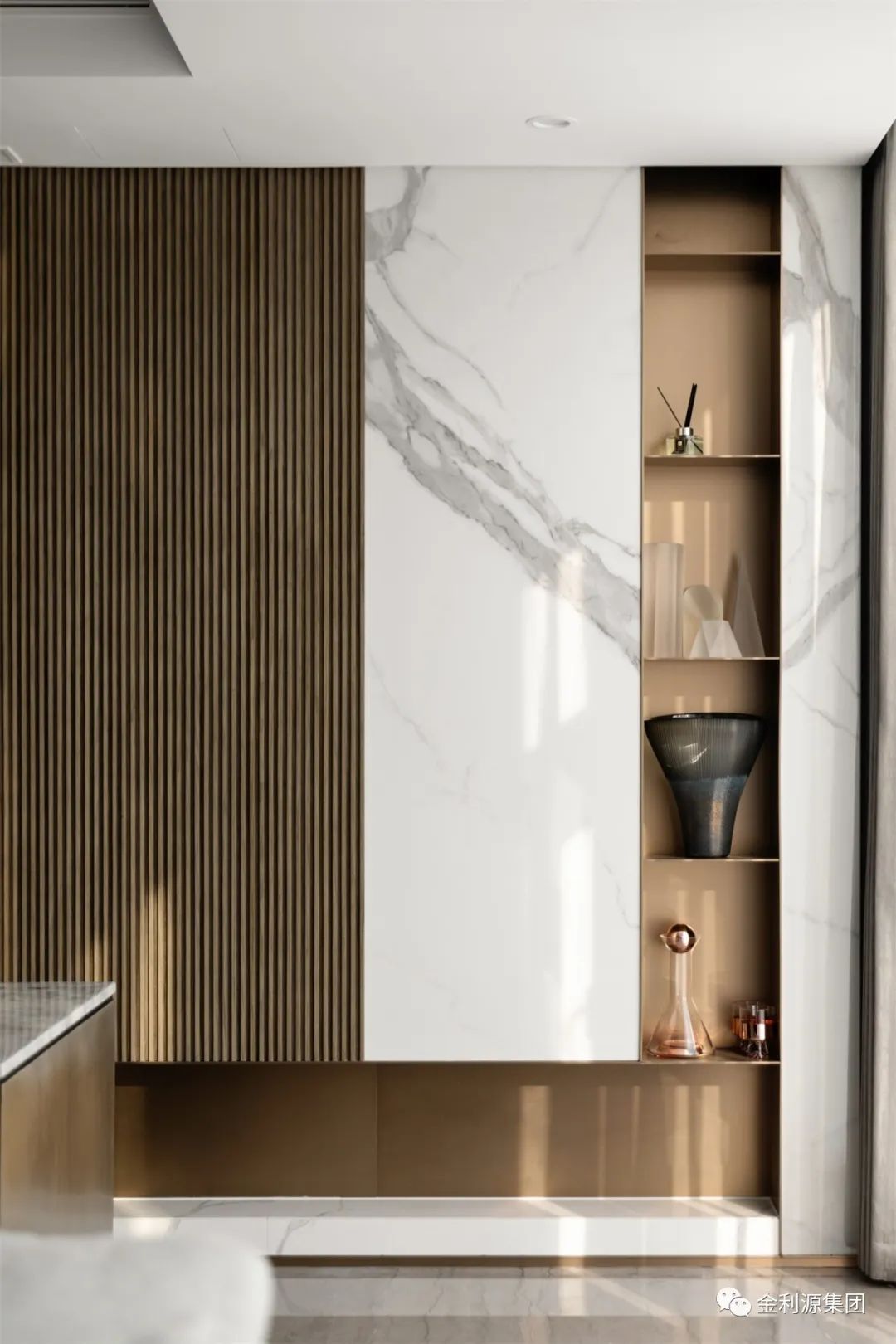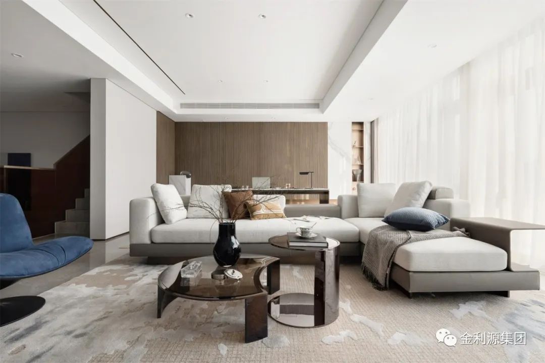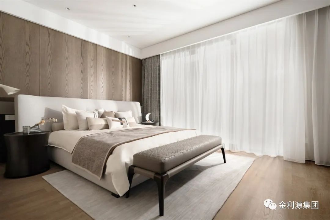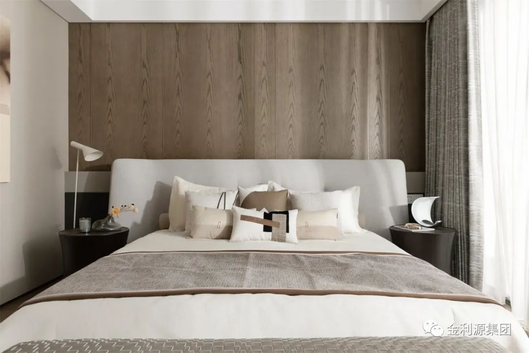 整體圍繞舒適質(zhì)感而打造。選用“馬鞍皮”“真皮”“磨砂皮”等各式不同質(zhì)感的皮革,和正面木飾面背景墻,豐富的層次讓居者在棕灰色的跳躍間感受到品質(zhì)人居的美好。生態(tài)板排名—金利源板材