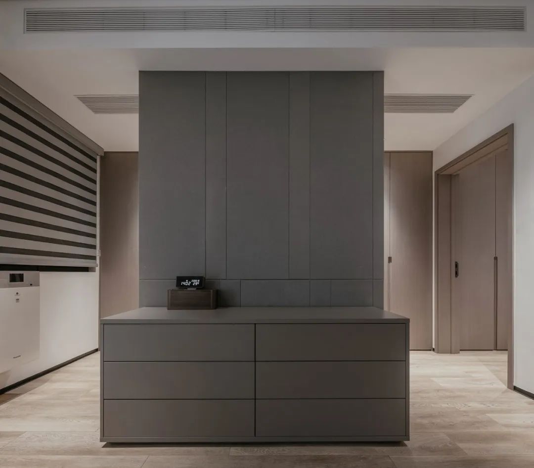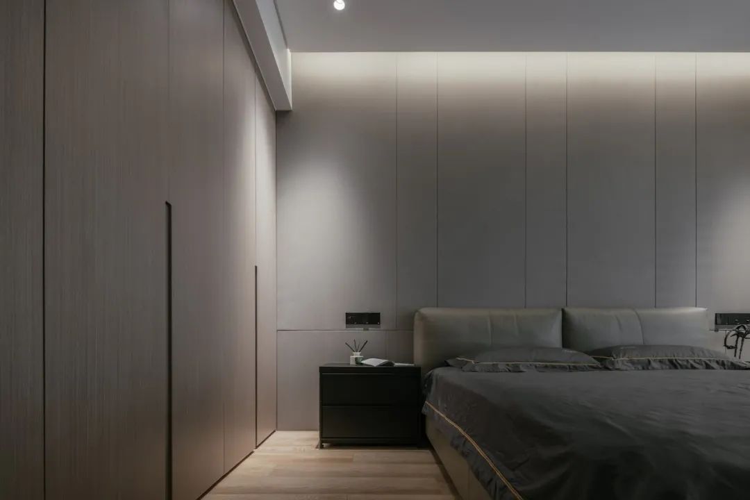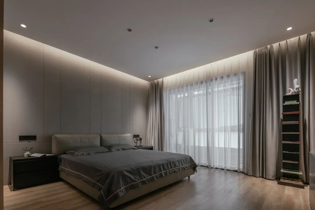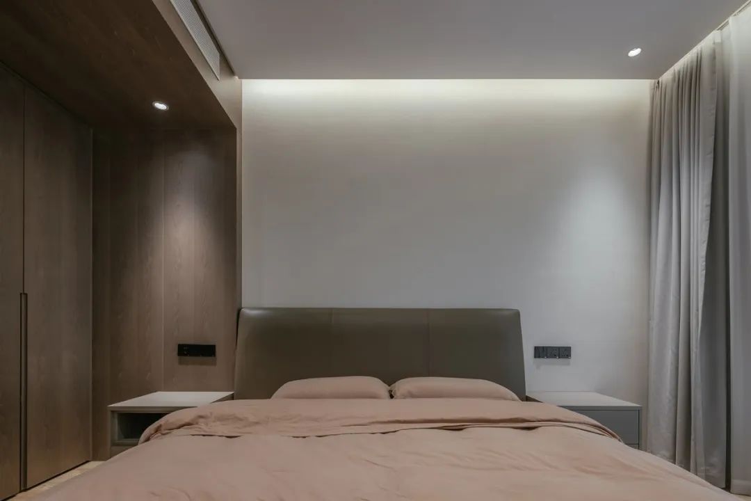臥室省略俗常的吊燈,以烘托靜謐氛圍為主旨,串聯(lián)起自然氣息與簡約美學(xué),激活了人與環(huán)境之間的心靈感應(yīng),降低整體色調(diào)的飽和度,增添雅致柔和的質(zhì)感,不知不覺中呵護了安睡夢境。