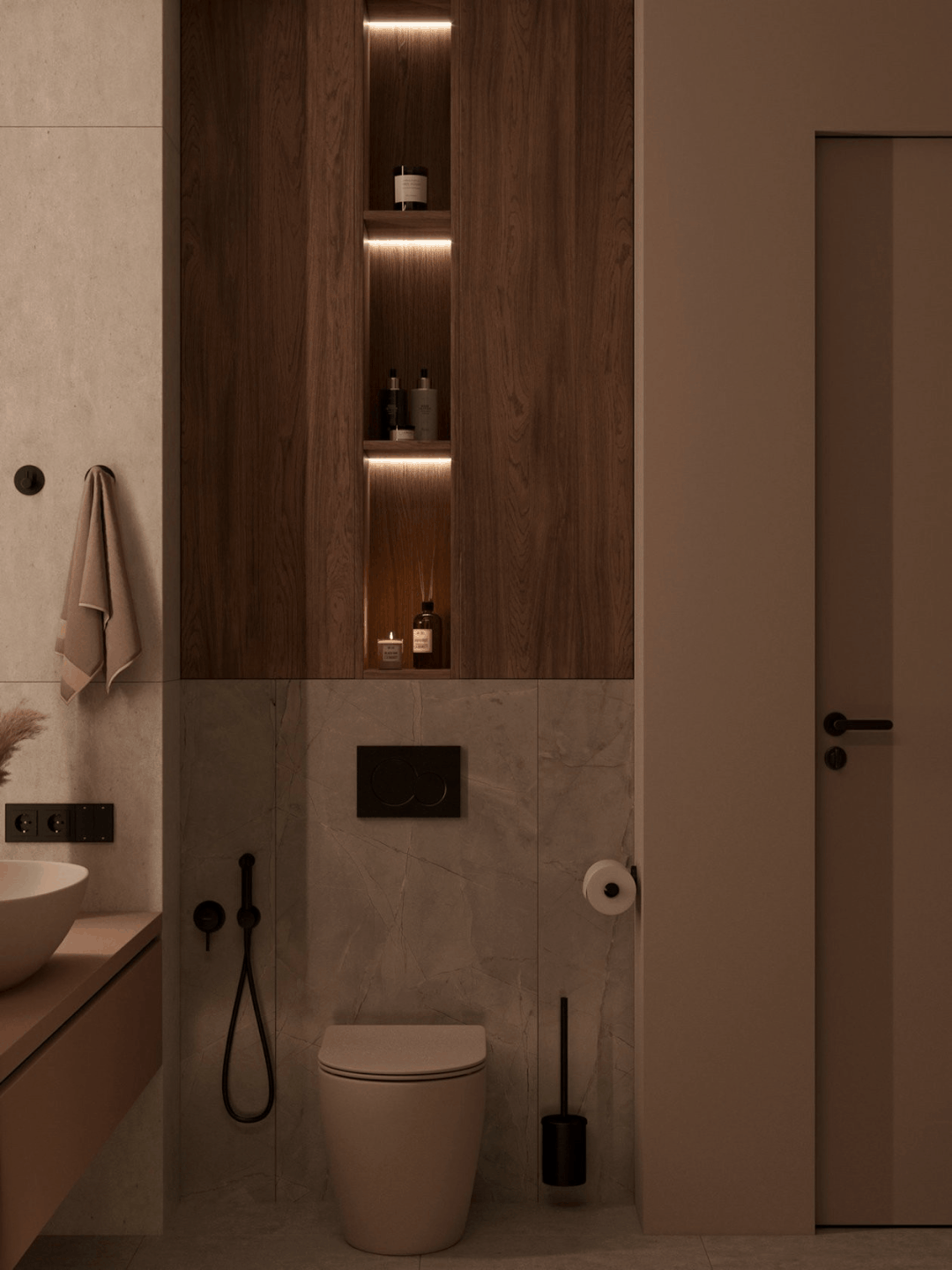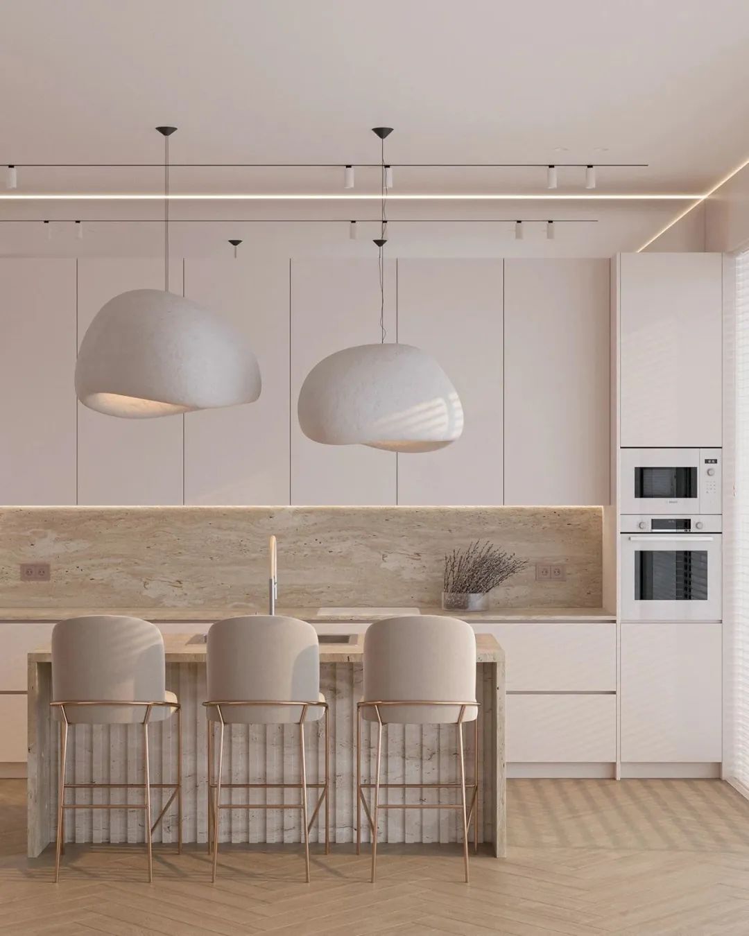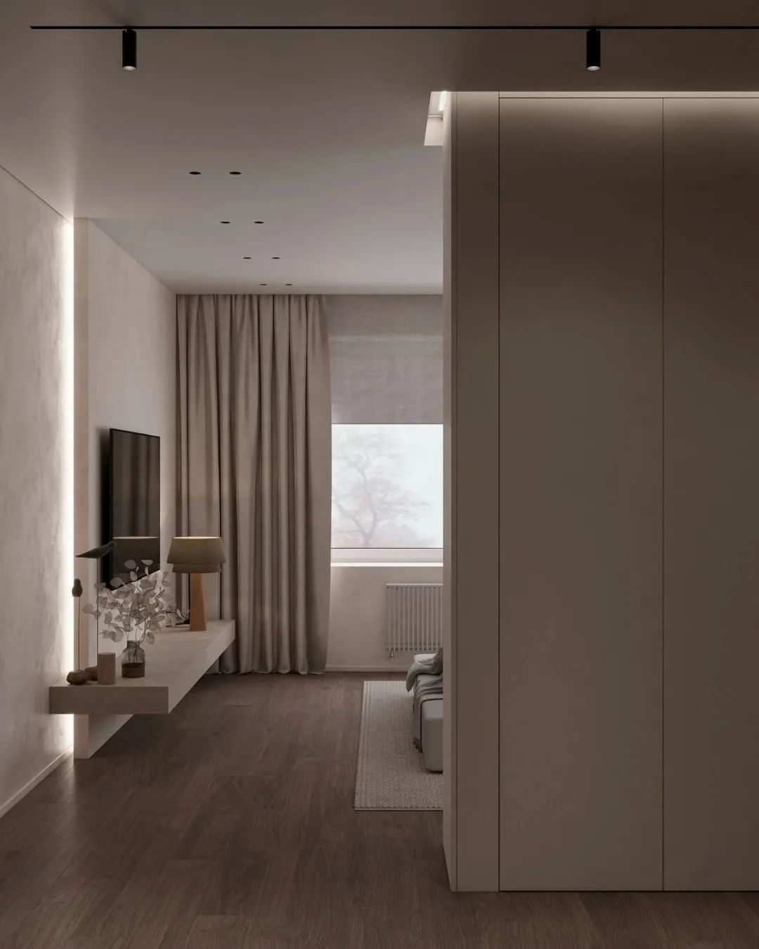(2) 米色、淺咖色調(diào)墻面涂料。選用硅藻泥做墻面涂料,其特有的顆粒質(zhì)感,使光源照射墻面時(shí)更加柔和。