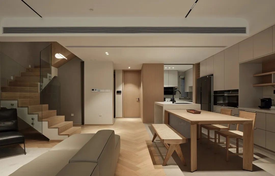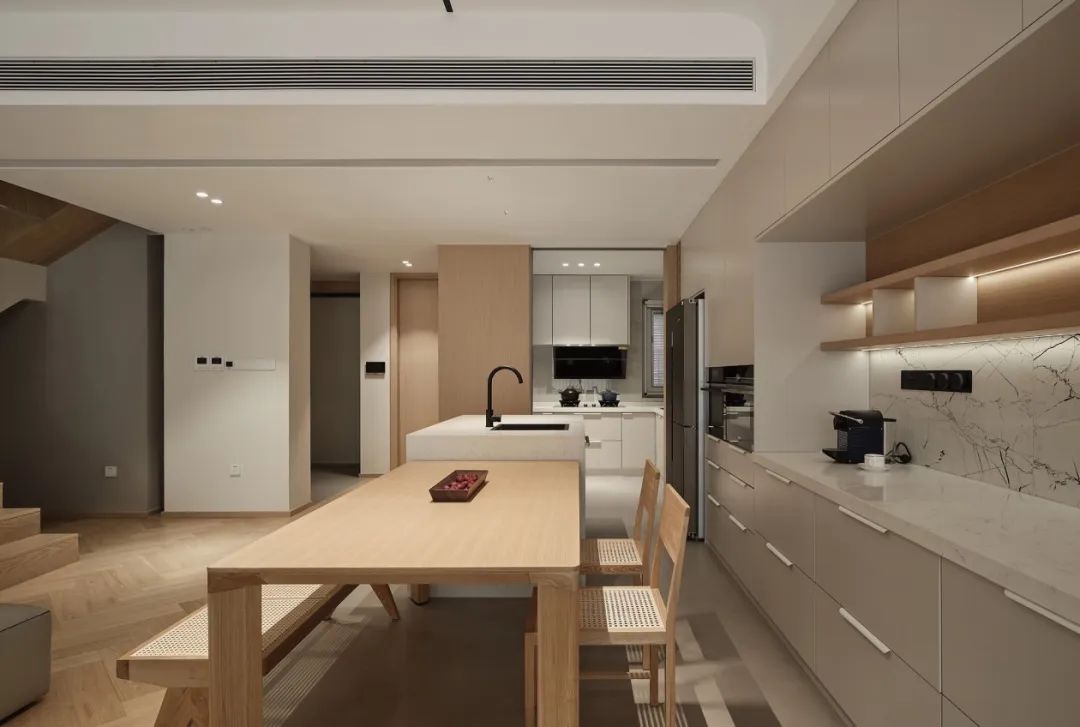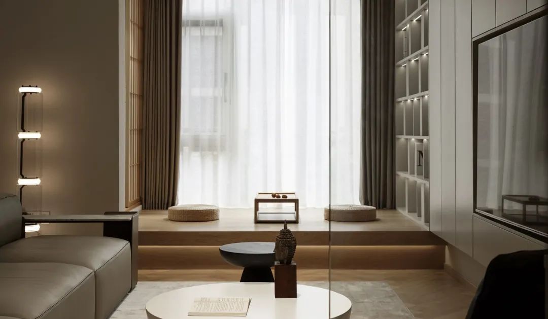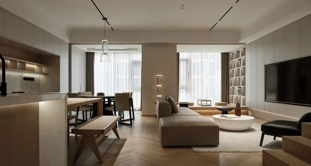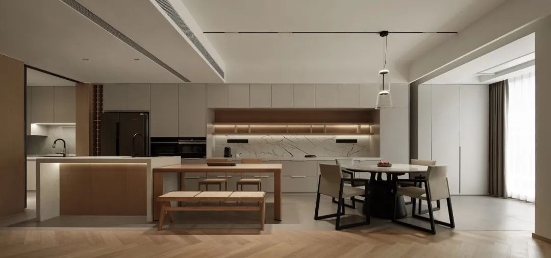 大地色系流轉于空間之中,隨者居者的感知力蔓延至更高層級,靠近雅灰的不同形態(tài),分區(qū)明顯,和諧靈動。以中樞立柱為基點,一半交織著會客場景與禪意空間,一半留白詩意與煙火氣息,間隔有序,串聯(lián)情態(tài),躍動出家的溫馨氣氛。