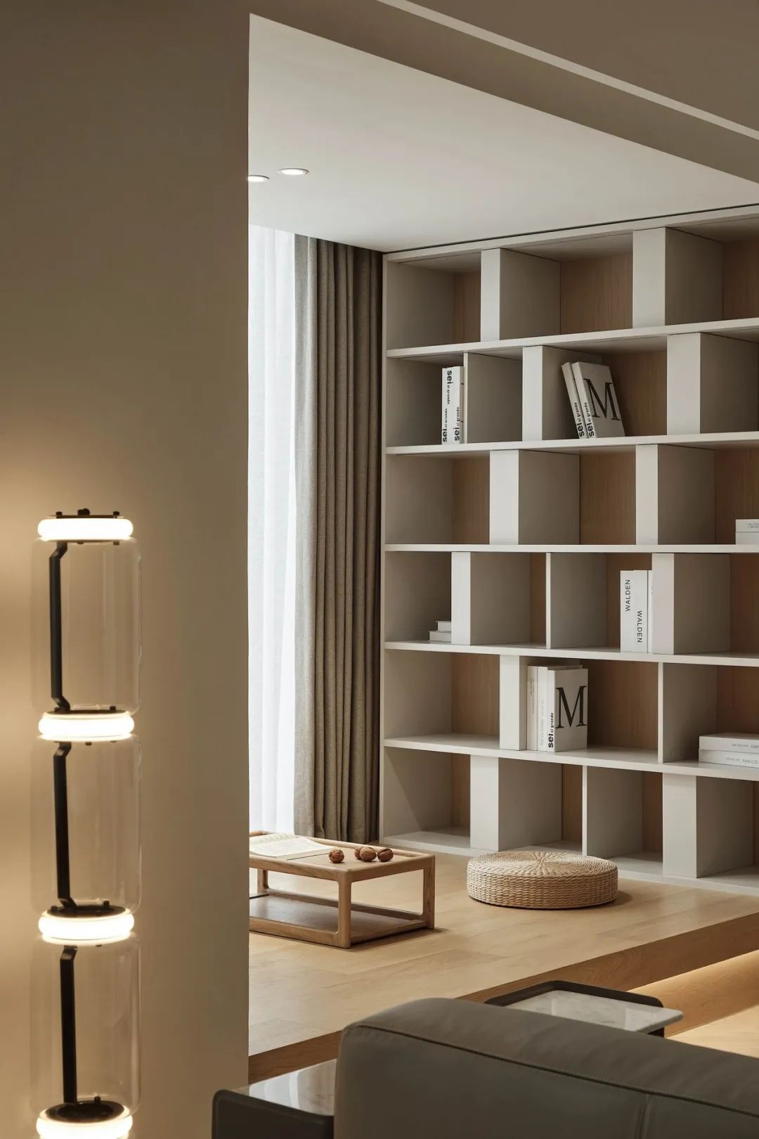 構筑地臺和定制書柜,在錯落的起伏間,烘托出書香氣息,于寬窄的結合之中,展現(xiàn)出設計意趣。