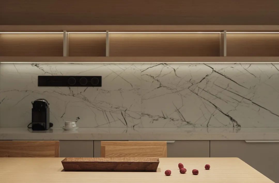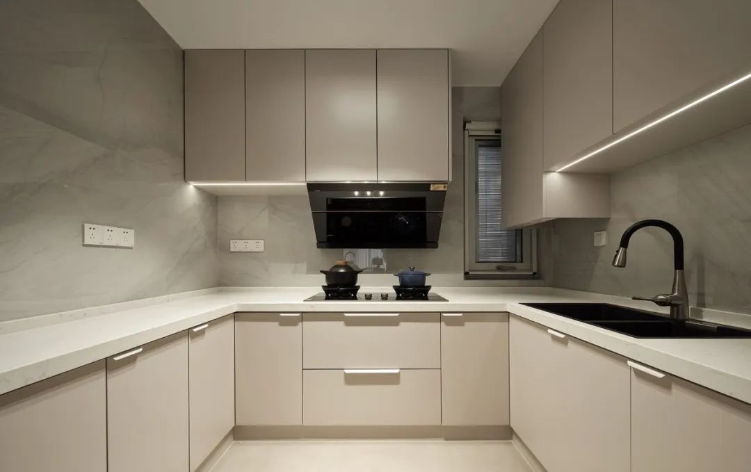 利落的轉折,統(tǒng)一的配色,相輔相成,巧妙的削弱空間的擁擠感,包容烹煮習慣,極致簡約,便利實用。