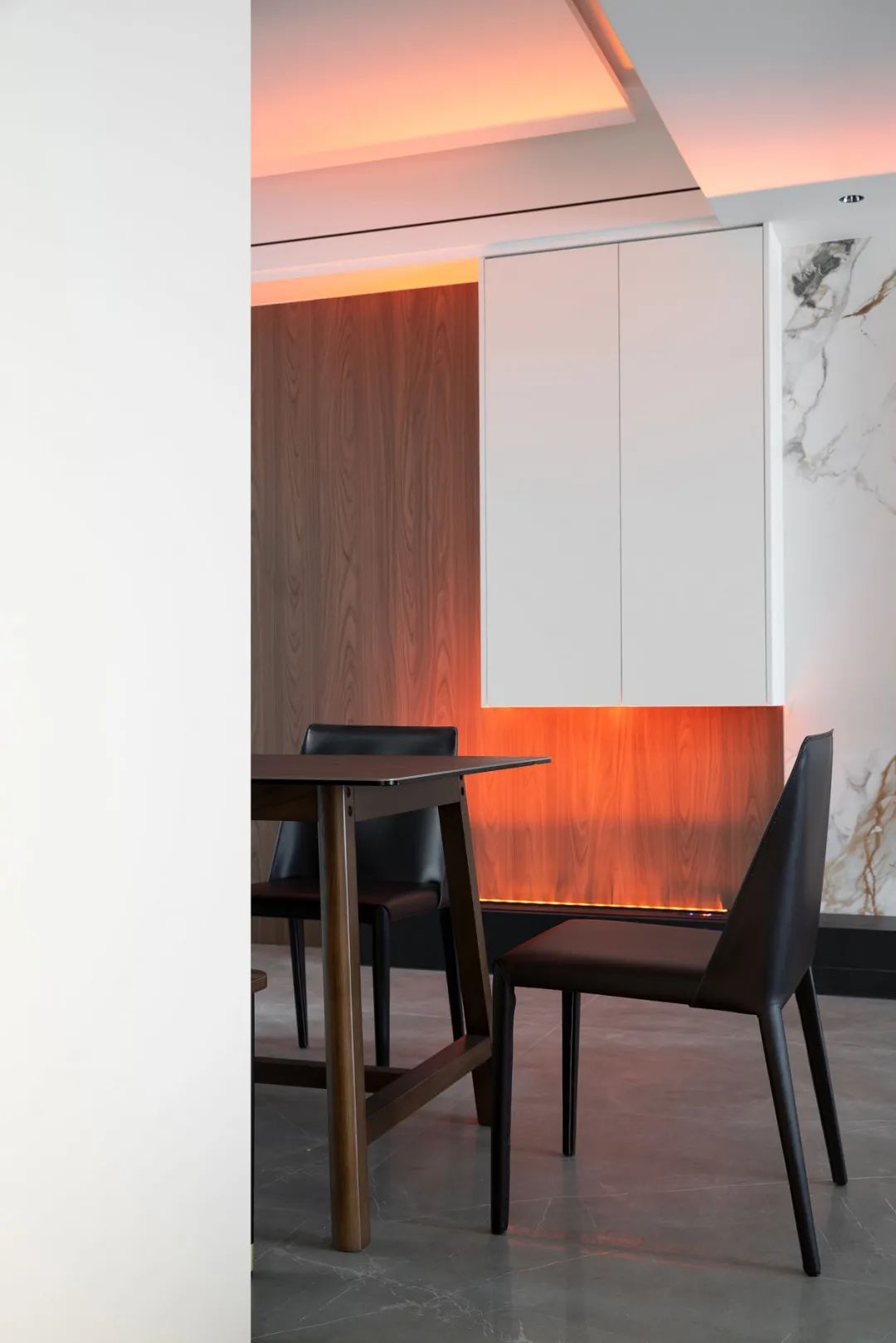 考量使用習慣和需求,重構前后、左右、上下相互配合的使用脈絡,明晰得當。 金利源構筑簡約利落的板材木作,定制家居規(guī)劃出空間的布局,留存空間縱勢意蘊,優(yōu)化出層次均衡、感官舒適、操作流暢的布局,承載一人或多人同時活動的情態(tài)。