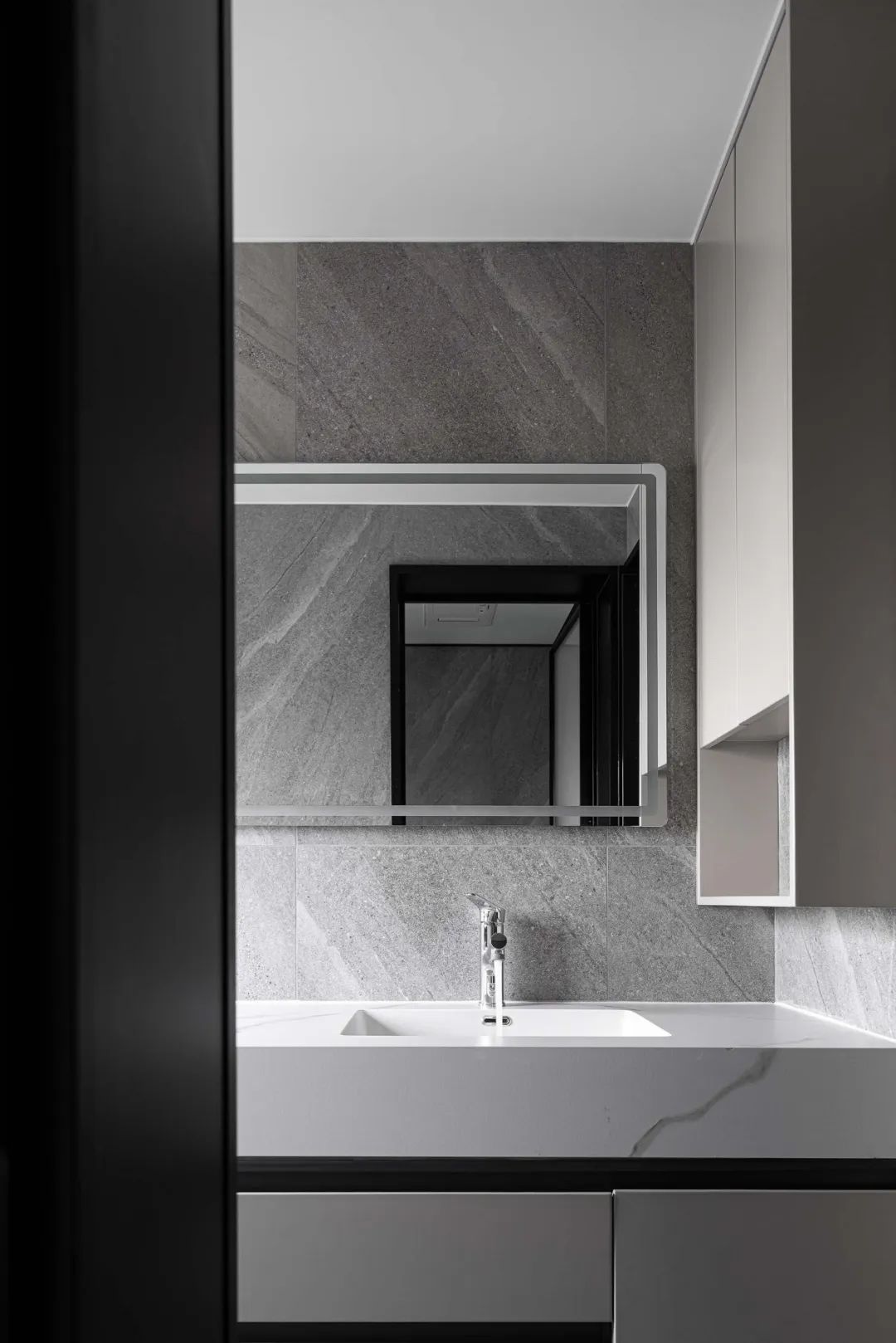 安寧,是居住者對家的渴望,衛(wèi)生間省略多元色相,僅用灰白浪潮升華這份安寧,為平日里的洗漱、沐浴、裝扮帶來無限松弛的享受。生態(tài)板板材—金利源板材