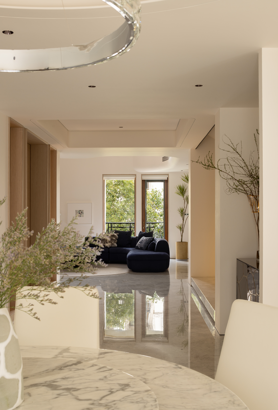 留白的處理手法、空間的雕塑,描繪出恬靜優(yōu)雅的畫(huà)面,也鋪墊出空間的整體基調(diào)。
