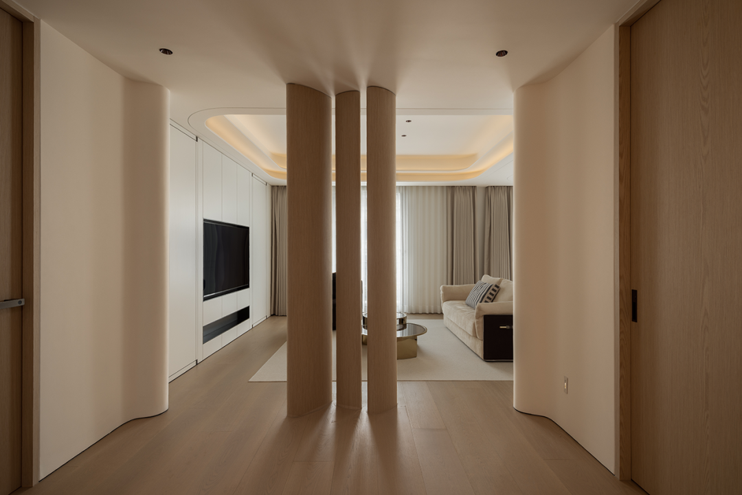 金利源借助功能的布局和動(dòng)線調(diào)整、以及空間設(shè)計(jì)語(yǔ)言,將光線、植物、自然原木的材質(zhì)及柔美的曲線等設(shè)計(jì)貫穿公共空間的活動(dòng)區(qū)域、生活興趣區(qū)及睡眠私享空間,讓每一位家庭成員在聚合或獨(dú)處時(shí),都能感受生活的從容優(yōu)雅。