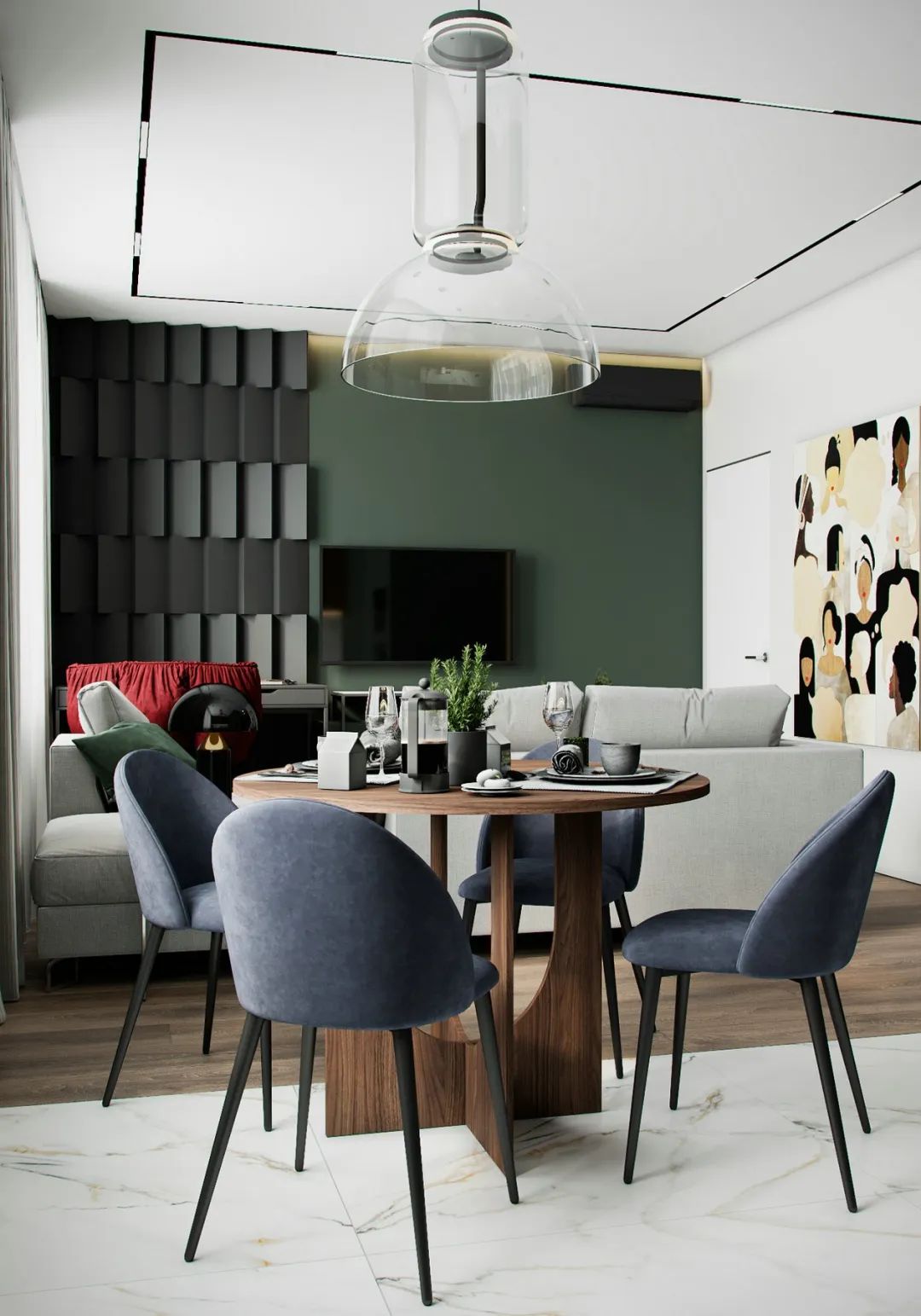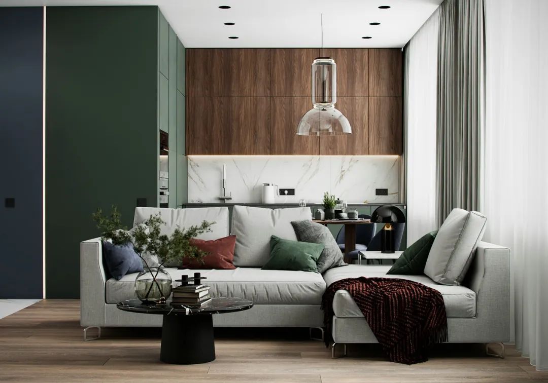 群青綠自帶成熟中性,將其融入家居設(shè)計(jì)之中,無論是作為背景色還是主題色,都能鋪展出輕奢的清醇質(zhì)感。ENF級(jí)環(huán)保板材—金利源板材