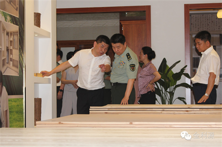 2016年6月24日下午,江西省委常委、省軍區(qū)司令員張曉明、省住建廳廳長陳平、上饒市市委書記馬承祖、婺源縣縣委書記張志堅一行蒞臨江西省金利源木業(yè)有限公司,為企業(yè)降成本、優(yōu)環(huán)境幫扶活動。