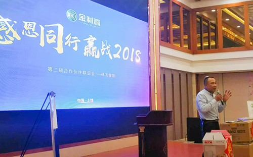 2018年4月21日,金利源綠色環(huán)保春風(fēng)行走近上饒站,開展了以“感恩同行·贏戰(zhàn)2018”為主題的合作伙伴聯(lián)誼會。