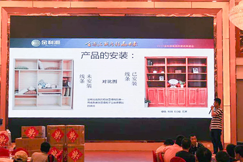 全國連鎖贛北區(qū)域負(fù)責(zé)人姚忠良全面介紹了公司綠色建材產(chǎn)品體系,以及如何引導(dǎo)綠色產(chǎn)品市場消費的提升,加強金利源品牌形象渠道建設(shè)等實質(zhì)性內(nèi)容。分析金利源建材產(chǎn)品在市場上的優(yōu)勢和產(chǎn)品特點,重點講解了最新綠色科技健康產(chǎn)品:680凈醛除菌生態(tài)板、無醛添加金鉆生態(tài)板、負(fù)離子金剛面生態(tài)板、私屬定制平開門、移門、線型類等產(chǎn)品。