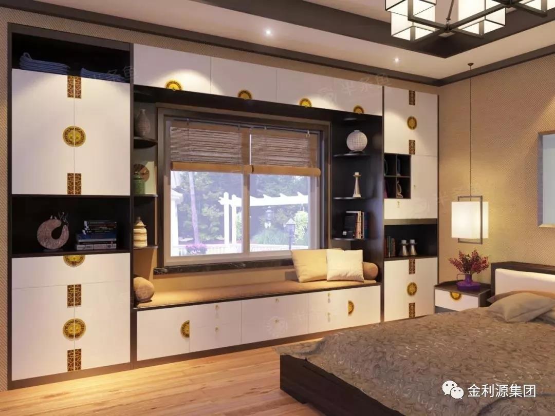 不同的小窗口也可以設(shè)計成為不同的飄窗柜,內(nèi)嵌擱板、下藏抽屜都可以成為增加空間手拿的利用工具。金利源將飄窗柜的設(shè)計結(jié)合空間整體風格進行搭配,借助飄窗柜增加窗口