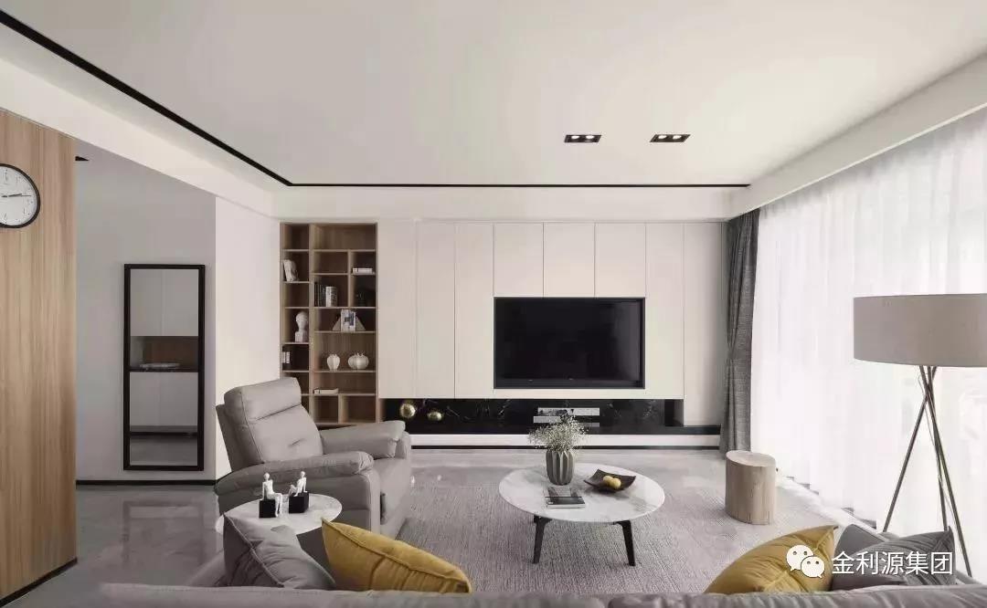 金利源定制的嵌入式電視柜,收納力強,既可以營造出簡潔大氣的視覺效果,又能收納書籍、收藏品或日常小物等,兼具實用與美觀。