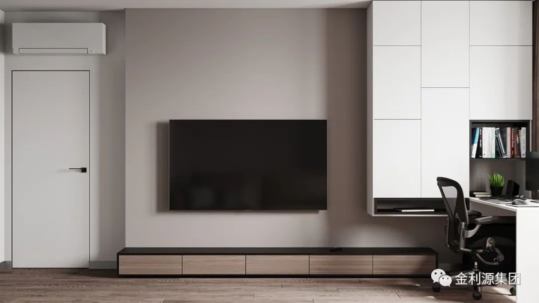 為了平衡整體的空間氣質(zhì),局部墻面也會采用溫暖的木質(zhì)元素進行調(diào)和,在打破清冷氛圍之余,又營造出溫暖舒適的家居格調(diào)。ENF級環(huán)保板材—金利源板材